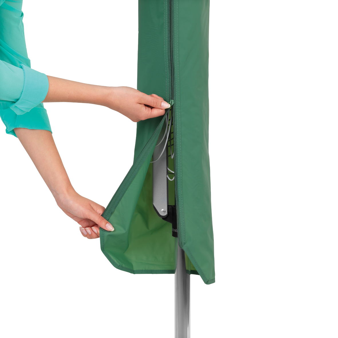 Gemakkelijk te bedienen ‘paraplu-systeem’ – altijd strakke drooglijnen – naspanbaar in 3 stappen