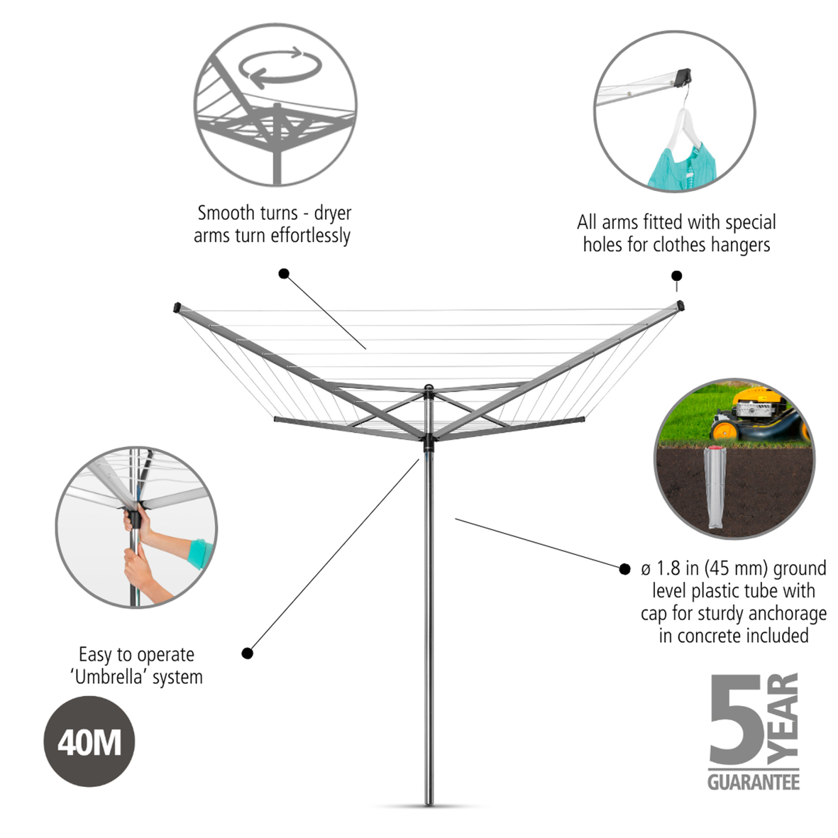 Droogmolen 40 meter met Ø 45 mm metalen grondanker