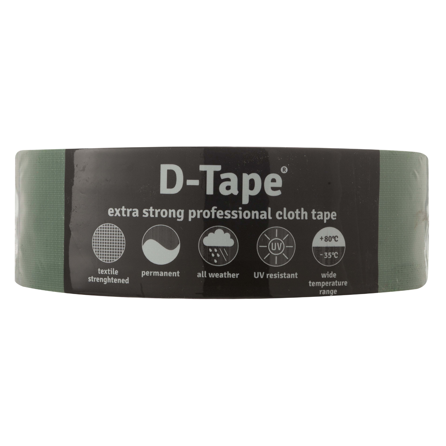 D-Tape is professionele reparatietape van de beste kwaliteit. Deze betrouwbare krachtpatser beschermt, dicht af, houdt vast en blijft zonder problemen presteren. Zelfs onder de zwaarste omstandigheden. Deze veelzijdige tape mag in geen enkele gereedschapskist ontbreken.Deze permanente tape is opgebouwd uit een kleeflaag, een laag textiel, een polyetheen film en een release coating. De tape is in verschillende kleuren beschikbaar.Technische specificaties:- mesh/dichtheid 70- kleeflaag van natuurlijk rubber- 0,3 mm totale dikte- 1,1 kg/25 mm afpelkracht – 2,0 kg/50mm afwikkelkracht- 14 kg/25mm trekkracht- optimale hechting na minimaal 60 minuten-warmtebestendig (-35° C tot 80°C)