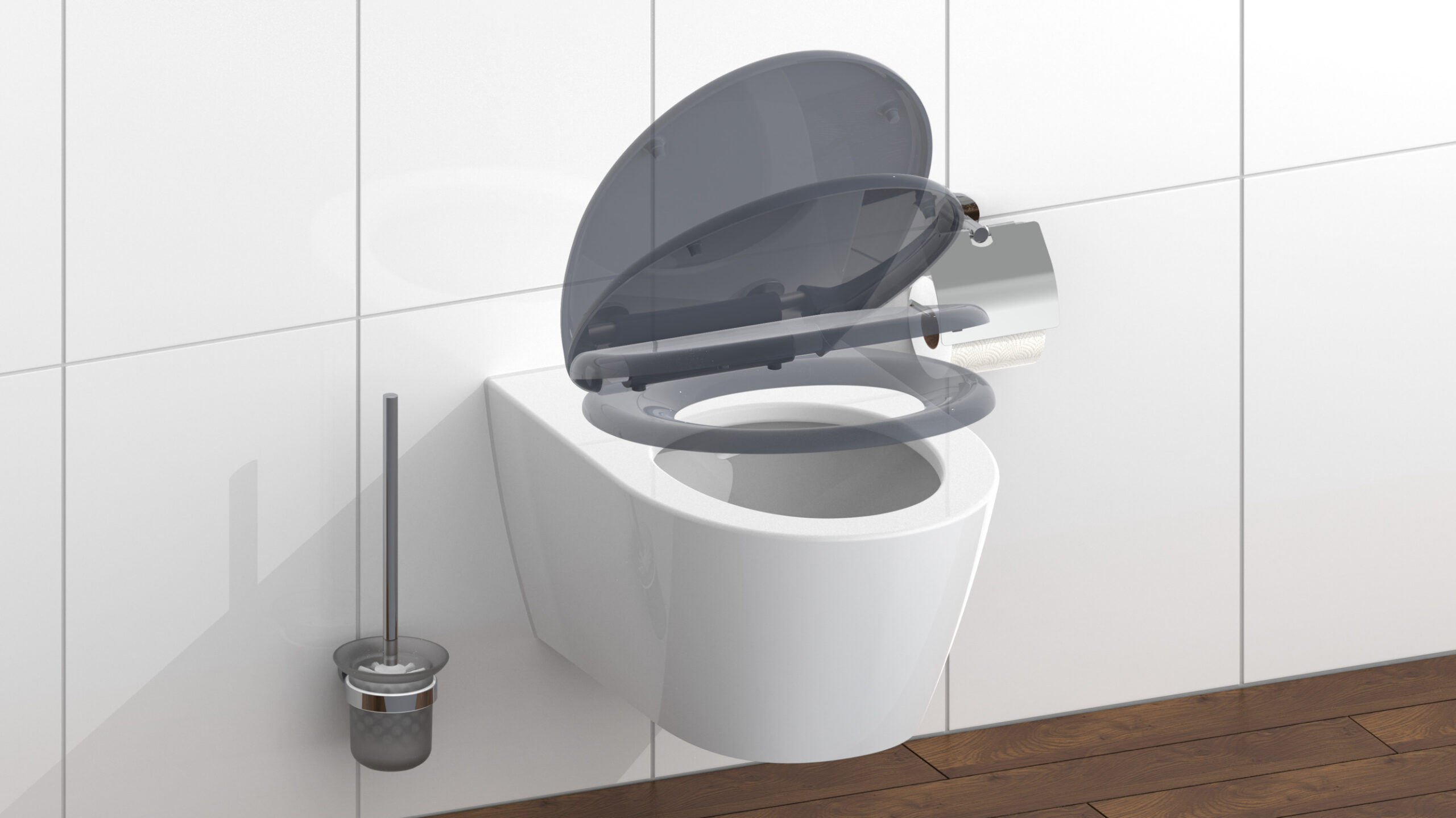 Duroplast WC-zitting ANTHRAZIT, met valrem en afneembaar • gemak en functionaliteit: geruisloos sluiten dankzij de scharnieren met valrem • praktische bediening: eenvoudig te verwijderen dankzij de afklikbare scharnieren • Lange levensduur: extreem stevig en krasvast • onderhoudsvriendelijk: gemakkelijk schoon te maken dankzij het poriëngladde oppervlak • standaard formaat: compatibel met alle standaard toiletpotten • eenvoudige installatie: compleet bevestigingsmateriaal inbegrepen • Innovatieve bevestiging: dankzij de zelfklevende pad, geen glijdende WC-bril meer, eenvoudige montage van bovenaf