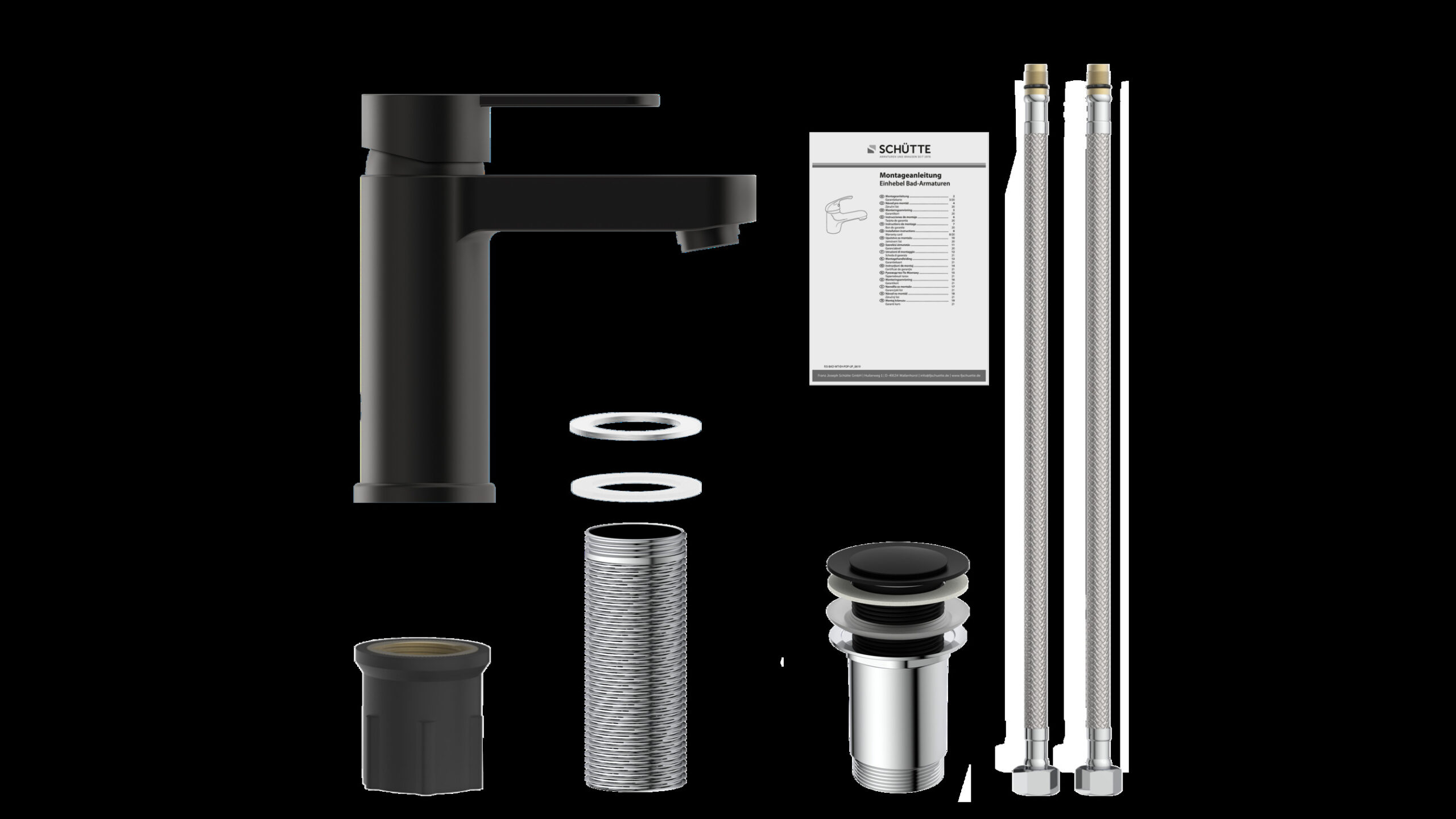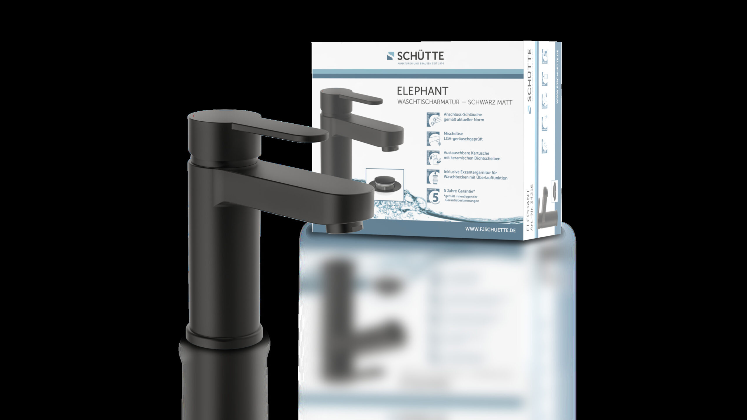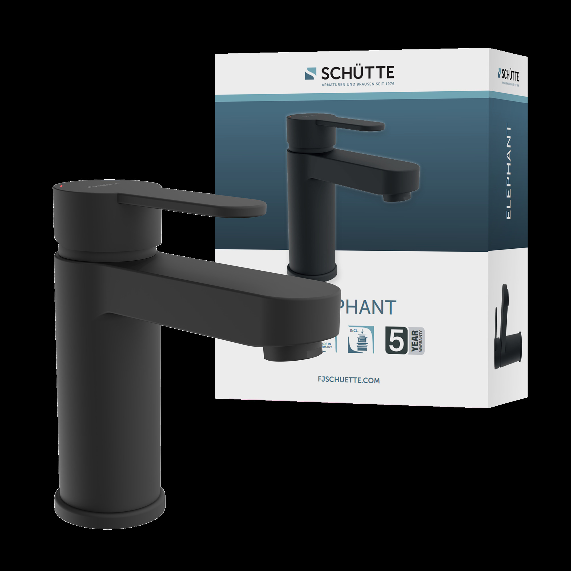 ELEPHANT Wastafelkraan, mat zwart • geluidarme, uitwisselbare 40 mm keramische cartridge • 1 ¼” (Ø ca. 4 cm) quick-clac afvoerplug van metaal • Gat voor excentrische bediening beschikbaar • merkstraalregelaar voor een perfect spuitpatroon • flexibele aansluitslangen ca. 400 mm • extra eenvoudige montage door centrale bevestigingsmoer • Garantie: 5 jaar