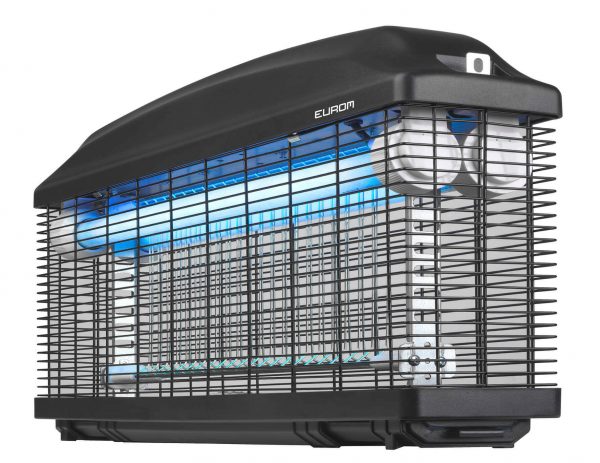 De Eurom Fly Away 40 IPX4-2 is een elektrische insectendoder met 2 UV lampen van 20 Watt. Deze lampen trekken de insecten aan die vervolgens tegen het hoogspanningsrooster vliegen. De Fly Away 40 heeft bovendien een isolatieklasse van IPX4, waardoor deze insectendoder ook in vochtige ruimtes kan hangen. Dankzij het hoge vermogen en de isolatieklasse is het ook mogelijk de Fly Away 40 in grotere ruimtes zoals stallen of schuren te gebruiken.Deze insectendoder is zowel hangend als staand te gebruiken. Ideaal voor wanneer je hem wilt verplaatsen!Dankzij de handige, uitschuifbare opvanglade is het makkelijk om de insectendoder te legen en schoon te maken.