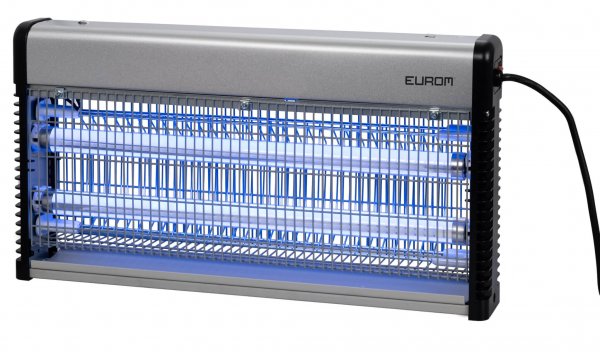 De Eurom Fly Away metal 30 LED is een insectendoder die zijn werk goed kan doen. De twee LED lampen van elk 7 Watt trekken de insecten aan. Vervolgens vliegen deze insecten tegen het 2200 Volt hoogspanningsrooster waar zij hun einde ontmoeten. De insecten worden opgevangen in het opvangbakje, die bovendien makkelijk te verwijderen is om schoon te maken.De aluminium behuizing maakt de Fly Away metal 30 LED een stevige insectendoder. Deze is staand te gebruiken, maar ook hangend dankzij de meegeleverde ophangketting.