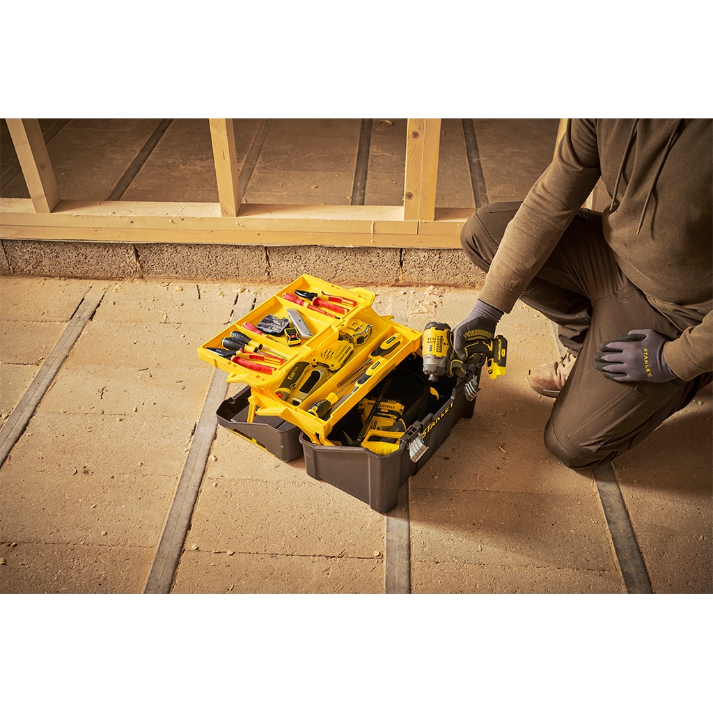 3 niveau’s, 2 cantilever lades – georganiseerd opbergen en snel en gemakkelijke toegangDeksel met organisers – voor het opbergen van klein materiaalStabiele basis – ook geopendGemakkelijk te sluiten dankzij het in de lade geïntegreerd handvatMetalen sluitingen – sterk en duurzaamAfsluitbaar met hangslot (niet inbegrepen)Combineerbaar met Organizer basic (STST81679-1) (niet bijgeleverd, afzonderlijk verkrijgbaar)Volume: 24 liter / Capaciteit: 22kgBuitenafmeting (cm L×B×H): 49 × 25,5 × 28,5 (gesloten)Binnenafmeting (cm L×B×H): 43,5 × 21,4 × 11