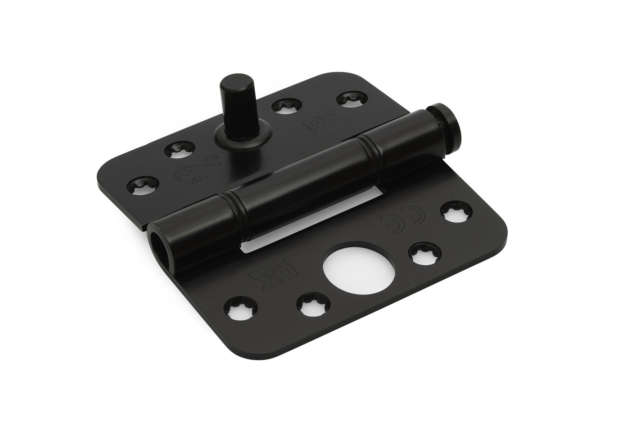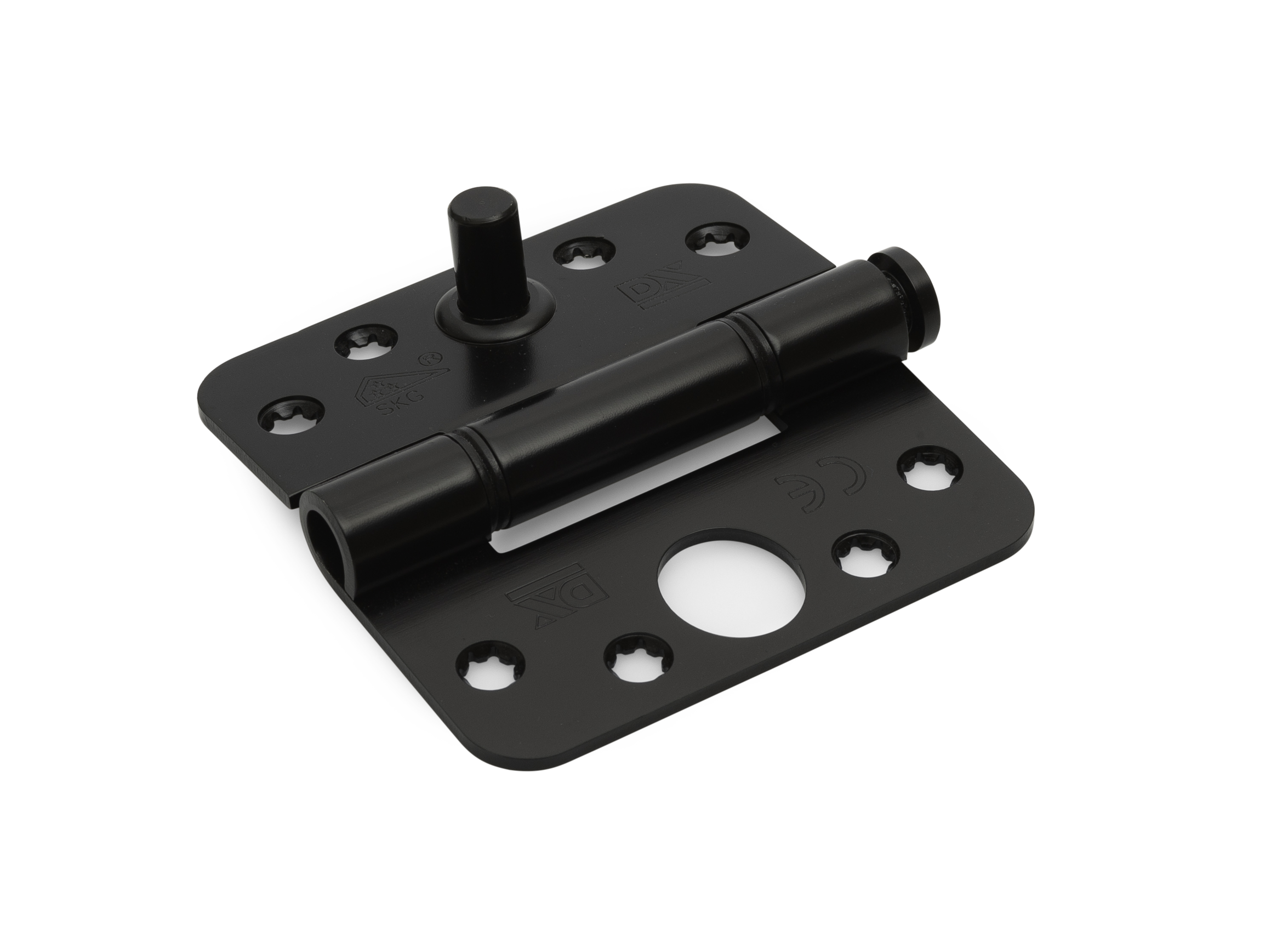 Een interieur met industrieel uiterlijk en zware deuren en ramen? Dan is dit SKG*** goedgekeurde zwarte glijlagerscharnier een slimme keuze. DX Glijlagerscharnieren zijn slijtvast, geruisloos, onderhoudsvrij en hebben een groot draagvermogen. Het glijlagerscharnier heeft zijn naam te danken aan de slijtvaste, UV-bestendige nylon glijlagers waar de scharnierbladen op draaien. Door de glijlagers kunnen moderne zware voor- en achterdeuren, nu afgehangen worden met minder scharnieren. Ter illustratie: voor een deur van 100 kg zijn slechts 2 glijlagerscharnieren nodig tegenover 4 kogellagerscharnieren. Door hun grote draagkracht zijn deze glijlagerscharnieren ook uitstekend in te zetten bij verzwarende omstandigheden, zoals het gebruik van een deurdranger of deurstopper. Bovendien kunnen ze worden toegepast op vlucht- en nooddeuren. Dit product voldoet aan alle eisen om binnen het Politie Keurmerk Veilig Wonen (PKVW) toegepast te worden. Dit scharnier is door zijn ronde hoeken uitermate geschikt om machinaal te verwerken. Met een freesmachine kan de uitsparing in deur of raam en kozijn gemaakt worden. Daarnaast zorgt de doorgezette knoop voor meer montagegemak. Het draaipunt van het scharnier is namelijk uit het midden geplaatst, waardoor inkrozing van de knoop in het kozijn niet nodig is. Bovendien is een glijlagerscharnier onderhoudsvrij: de kartelpen loopt niet op en de slijtvaste, UV-bestendige glijlagers hebben een zelfsmerend effect. Hierdoor is er ook geen sprake van vuilvorming op of aantasting van schilderwerk op deuren en kozijnen.Door deze duurzame ontwerpkeuzes gaat het scharnier langer mee. Naast uitstekende producteigenschappen is er ook een verbeterslag gemaakt in de vormgeving van het scharnier. De penkop is namelijk zo vormgegeven dat deze na borging bijna naadloos aansluit op de knoop. Hierdoor vormen knoop en kop één strak geheel en is dit sterke scharnier tevens een model dat gezien mag worden op uw deur of raam.