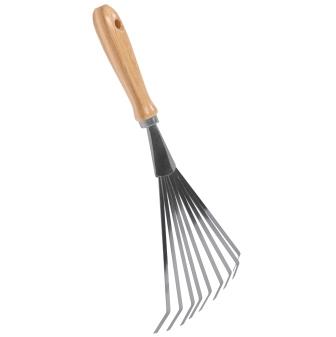 • Bladharkje van compact formaat om ook in bloempotten te harken