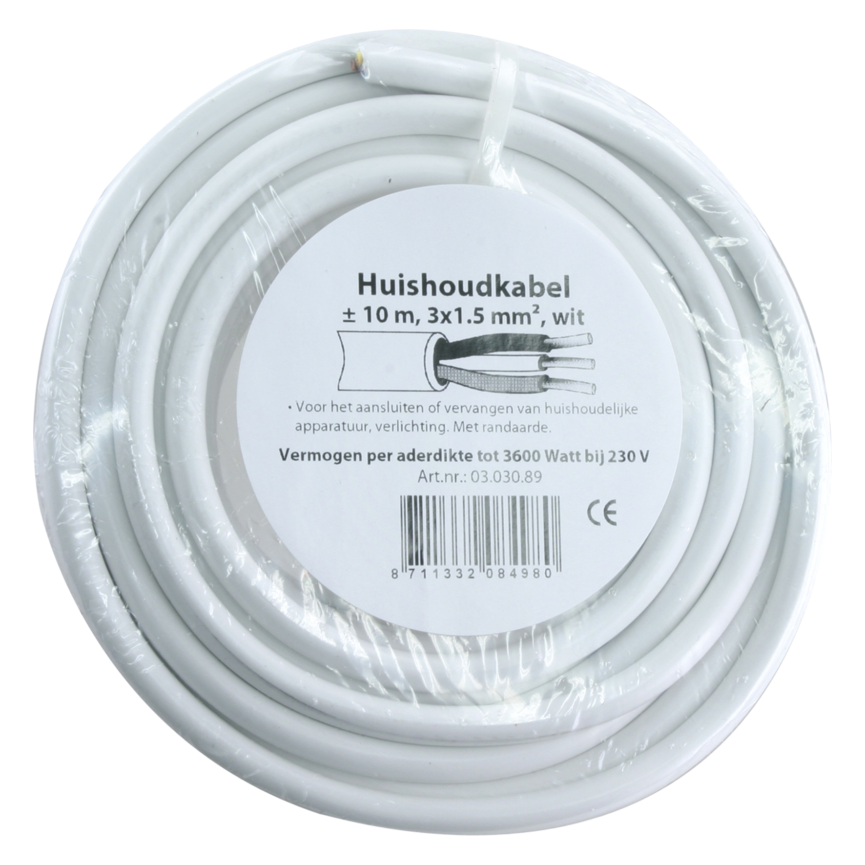 HUISHOUDKABEL VMVL 3X1.5 WIT 10M