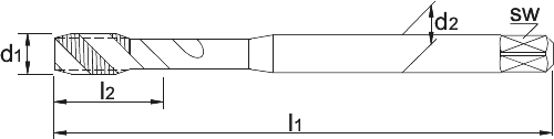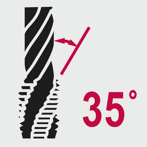 DIN 371, 60°, verdikte schacht, spiraalhoek 35°, voor blinde gaten, aansnijding 2-3 gangen