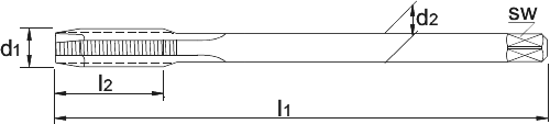 DIN 376, 60°, dunne schacht, met schilaansnijding voor doorlopende gaten, aansnijding 3,5-6 gangen