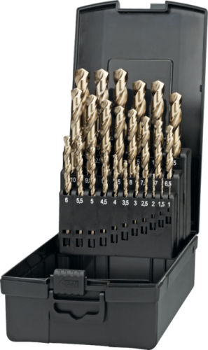 DIN 338, met kruisaanslijping vanaf 3,0 mm, in kunststof cassette, gevuld met boren uit artikelgroep 11.490
