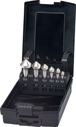 International Tools ECO PRO HSS Set Verzinkboren DIN 335-C 42.535‚ 90°‚ 3 snijkanten 6‚3 – 20‚5 mm DIN 335-C, cil. schacht, in kunststof koffer, gevuld met verzinkboren uit artikelgroep 42.535