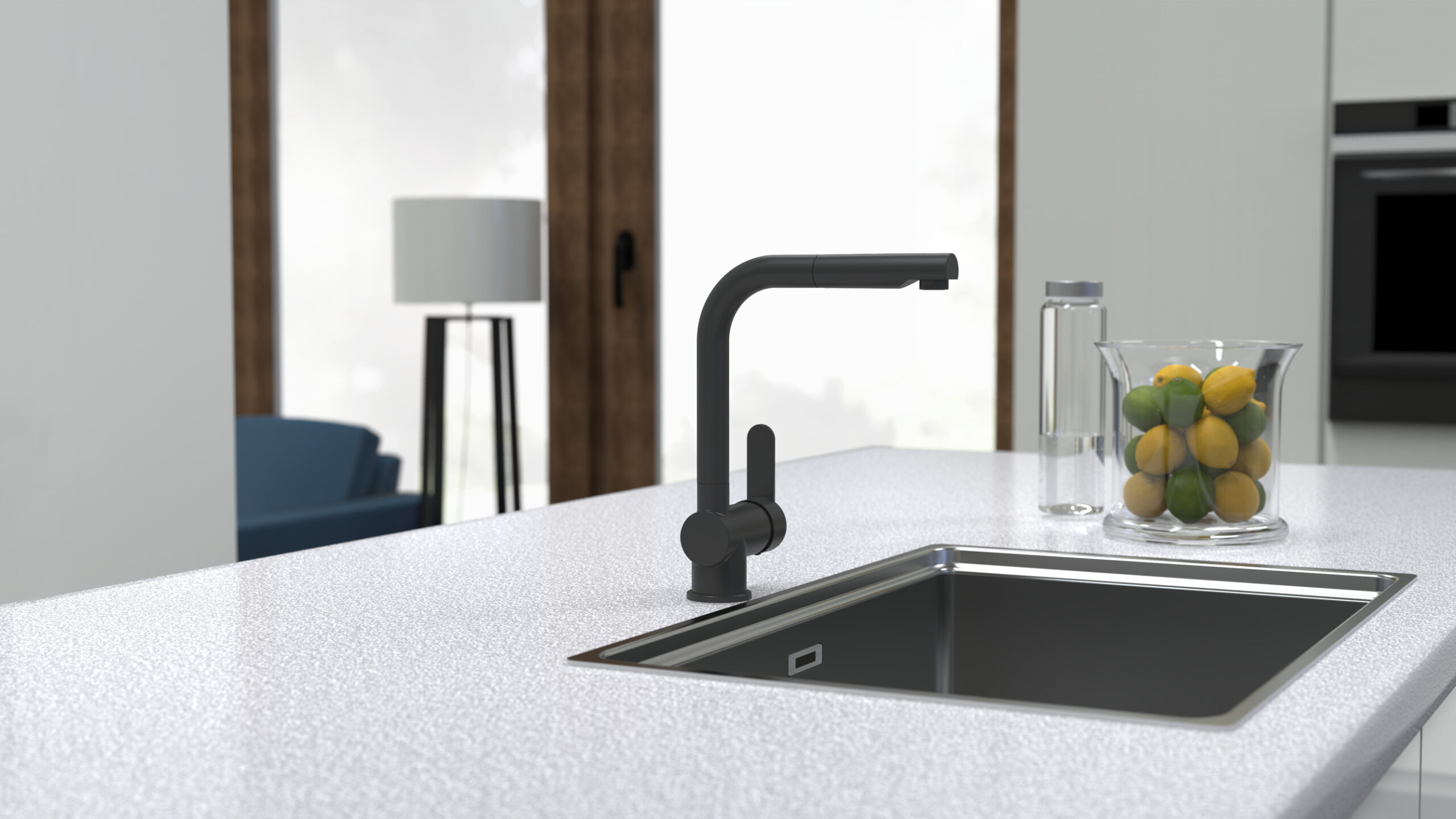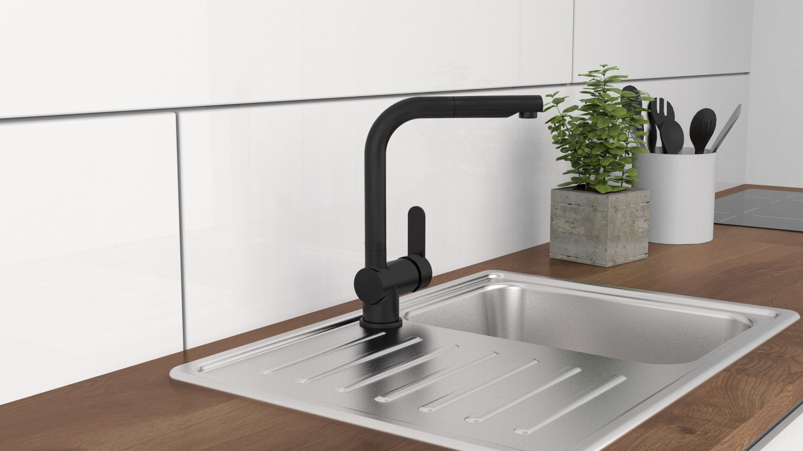 LONDON Keukenkraan, mat zwart, met uittrekbare uitloop • praktische cold-start functie om energie te besparen • 360° draaibare uitloop • uittrekbare uitloop • doucheslang, ca. 150 cm • geluidsarme, uitwisselbare 40 mm keramische cartridge • merk straalregelaar voor een perfect straalbeeld • extra eenvoudige montage door centrale bevestigingsmoer • flexibele aansluitslangen ca. 600 mm • […]