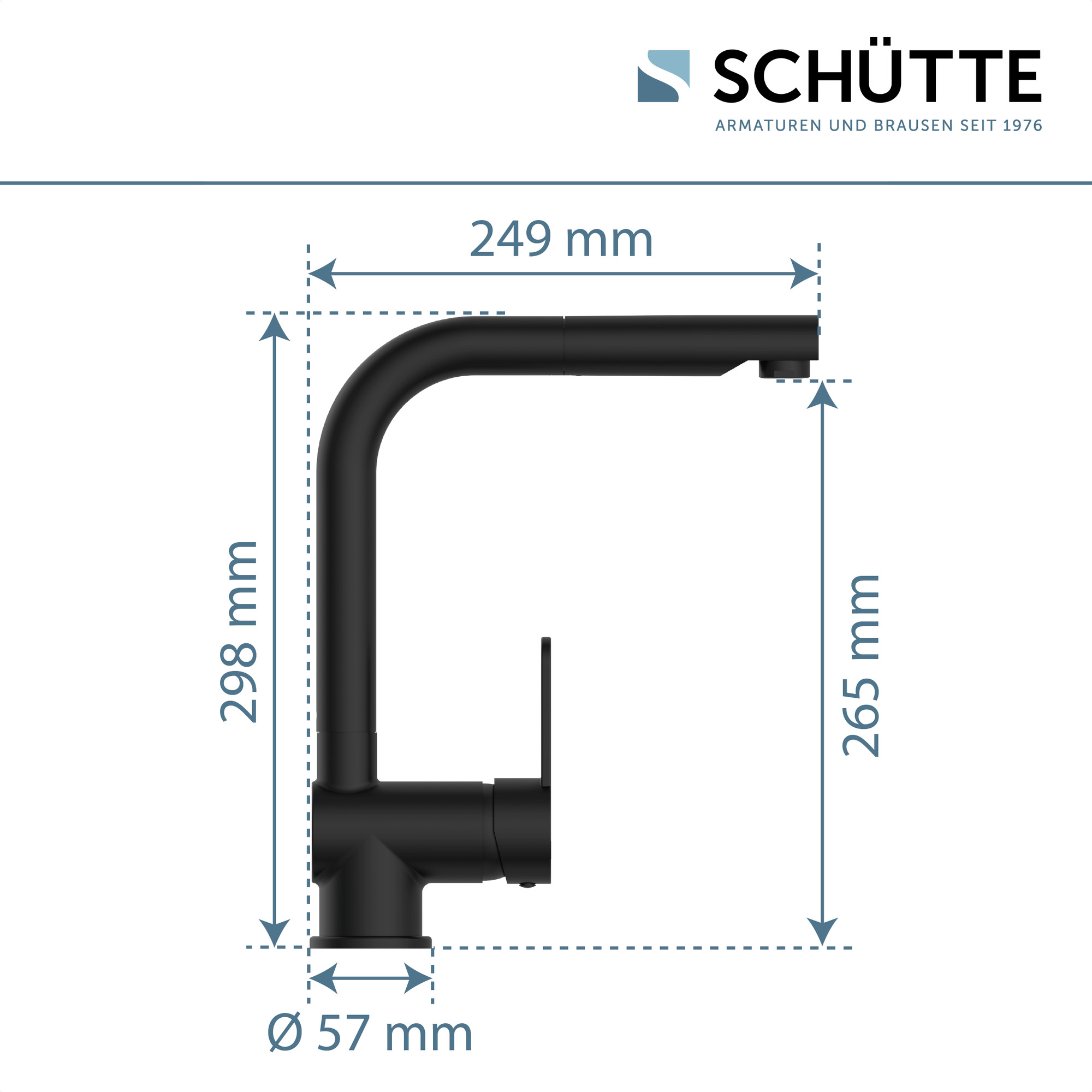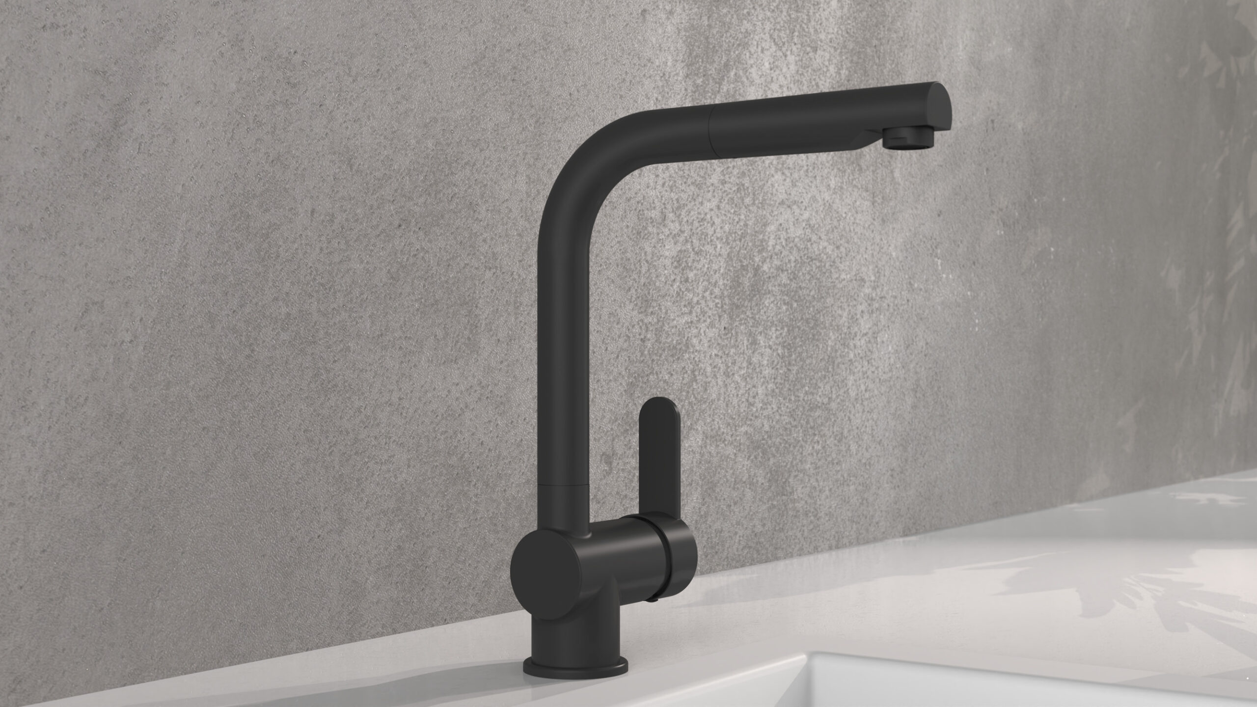 LONDON KEUKENKRAAN, MAT ZWART, MET UITTREKBARE UITLOOP