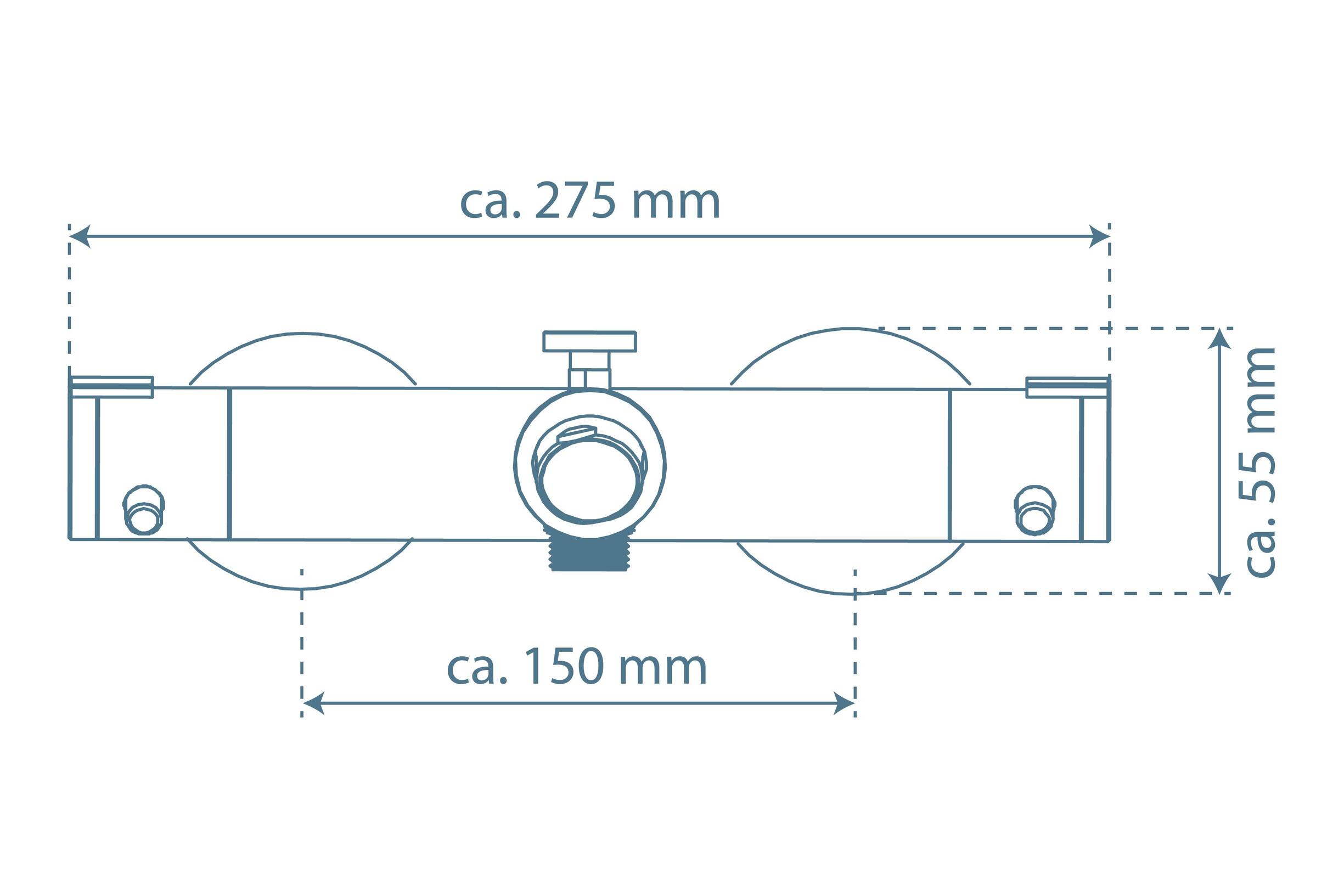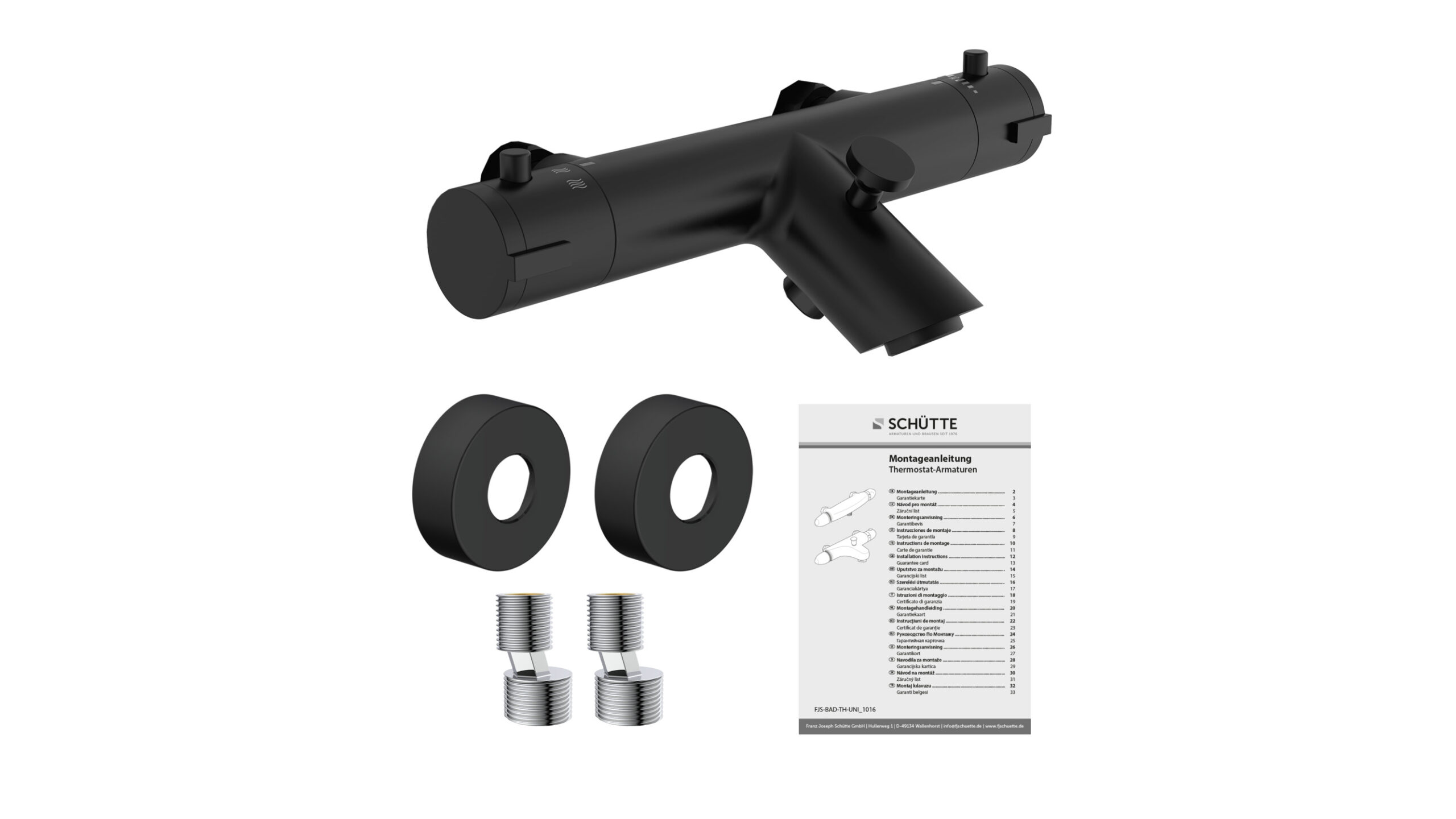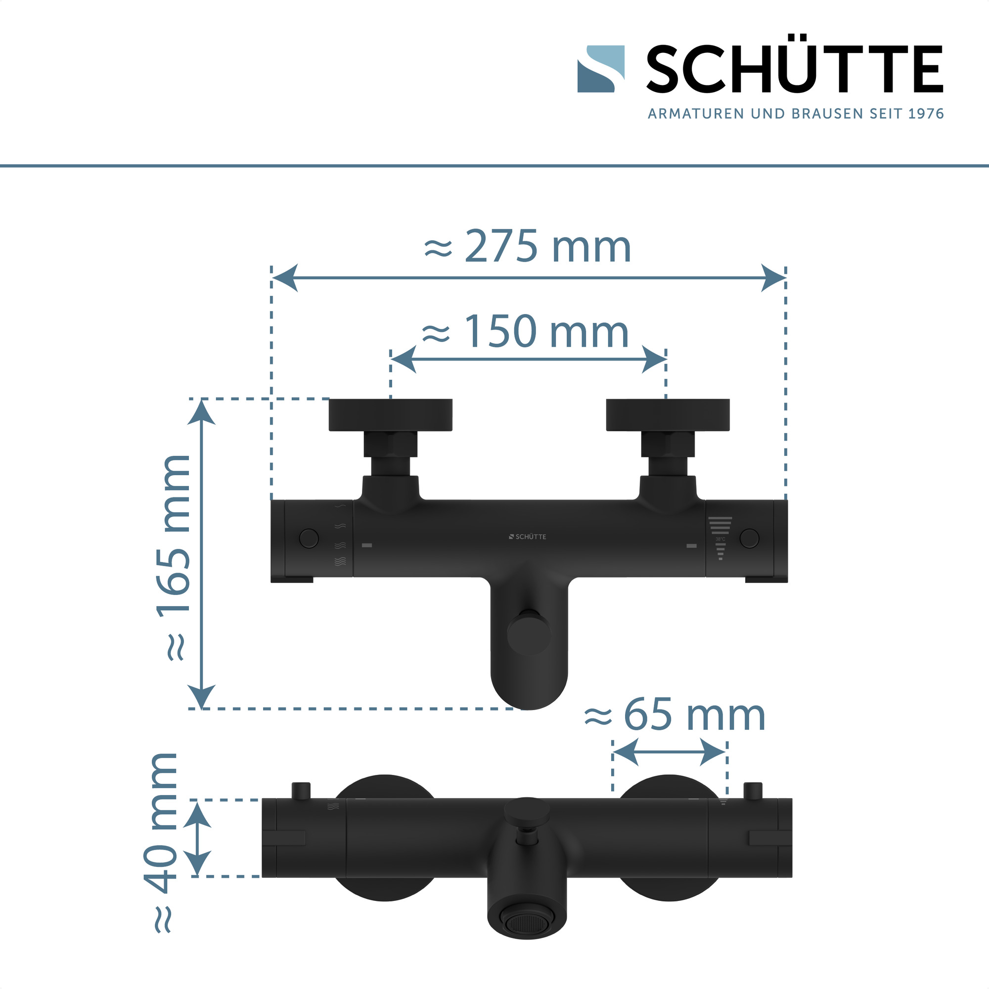 LONDON Thermostatische badkraan, mat zwart • thermostatisch element „Made in Europe“ • eco-stop functie — tot wel 50% water besparend • temperatuurschaal met veiligheidsstop op 38 °C • uitsteeksel ca. 165 mm • ½” (Ø ca. 1,9 cm) verbinding voor doucheslang • ½” (Ø ca. 1,9 cm) keramisch ventiel bovenstuk • uitwisselbaar thermostatisch element • merkstraalregelaar voor een perfect spuitpatroon • met montagemateriaal • Garantie: 5 jaar