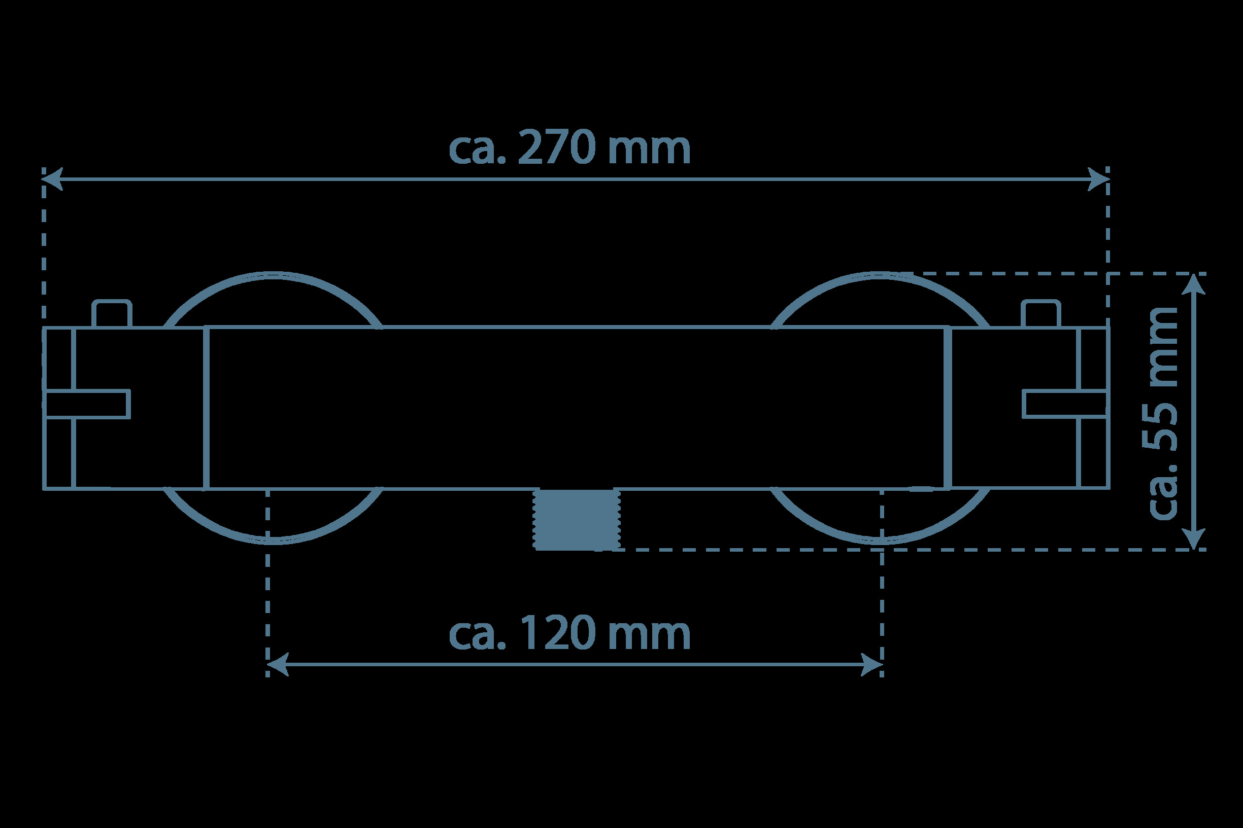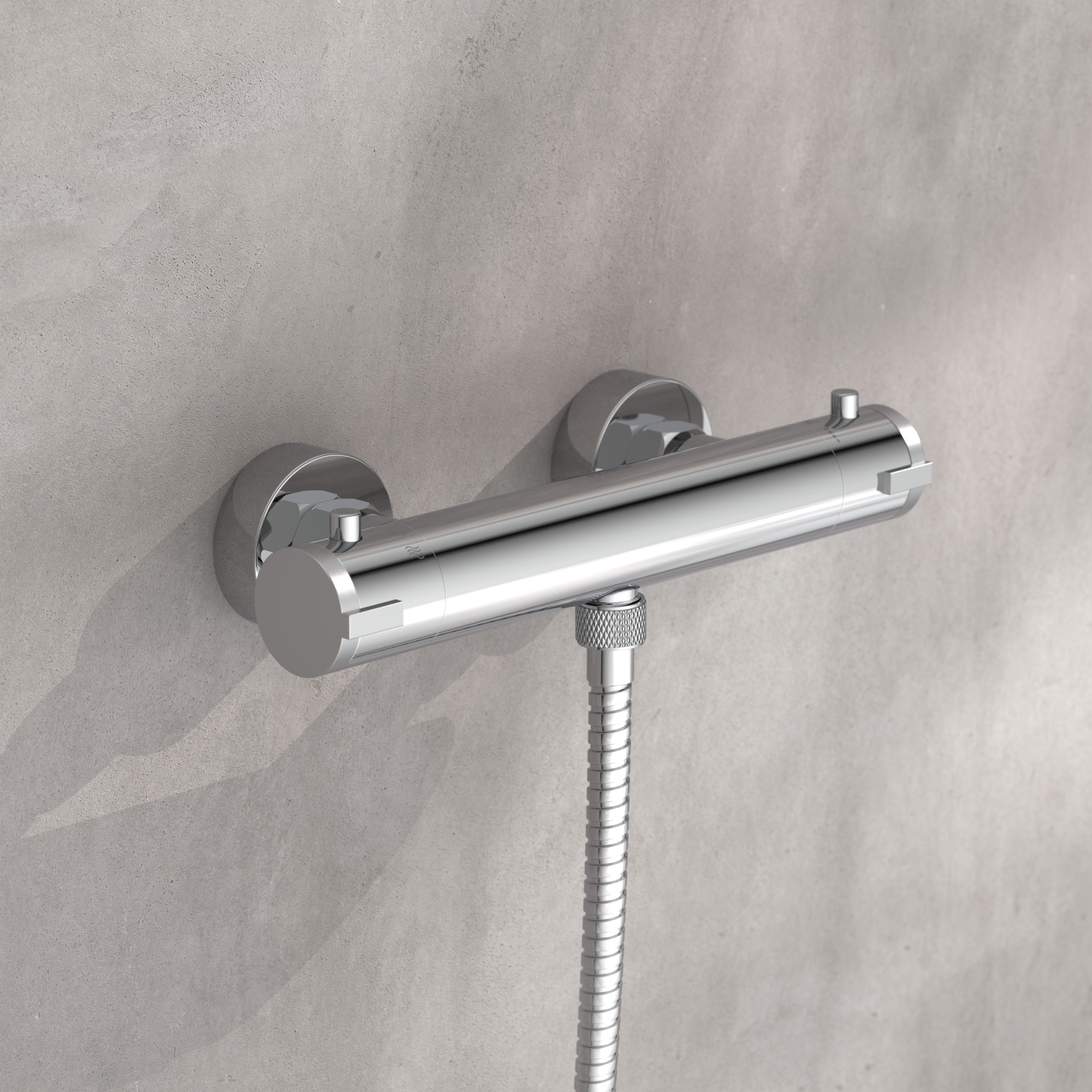 LONDON Thermostatische douchekraan, chroom • thermostatisch element „Made in Europe“ • eco-stop functie — tot wel 50% water besparend • temperatuurschaal met veiligheidsstop op 38 °C • ½” (Ø ca. 1,9 cm) verbinding voor doucheslang • ½” (Ø ca. 1,9 cm) keramisch ventiel bovenstuk • uitwisselbaar thermostatisch element • Stichmaß 120 mm • Garantie: 5 jaar