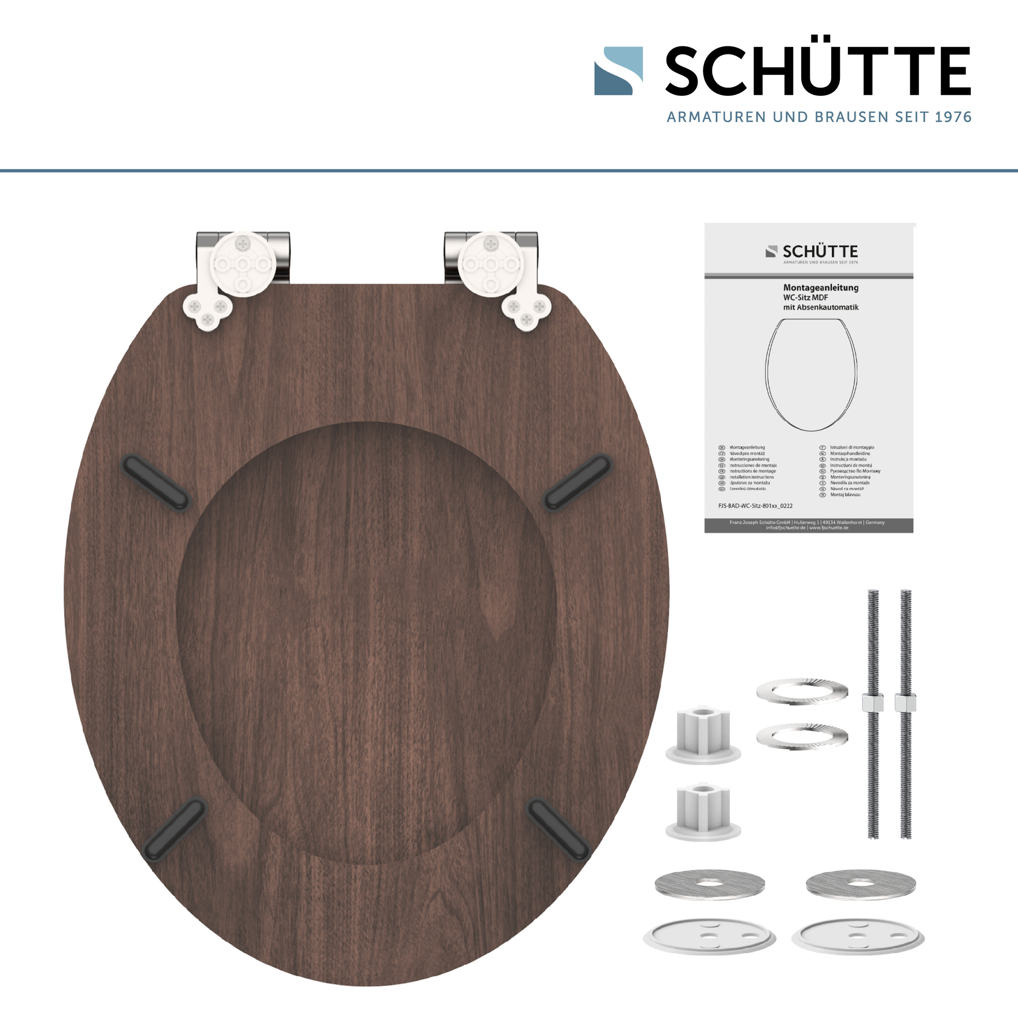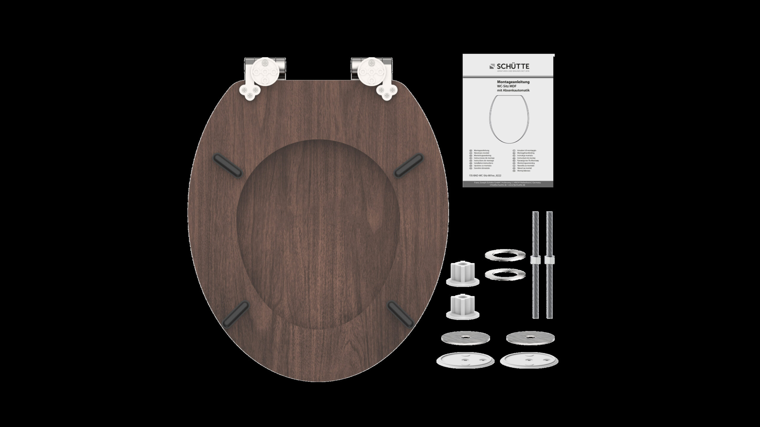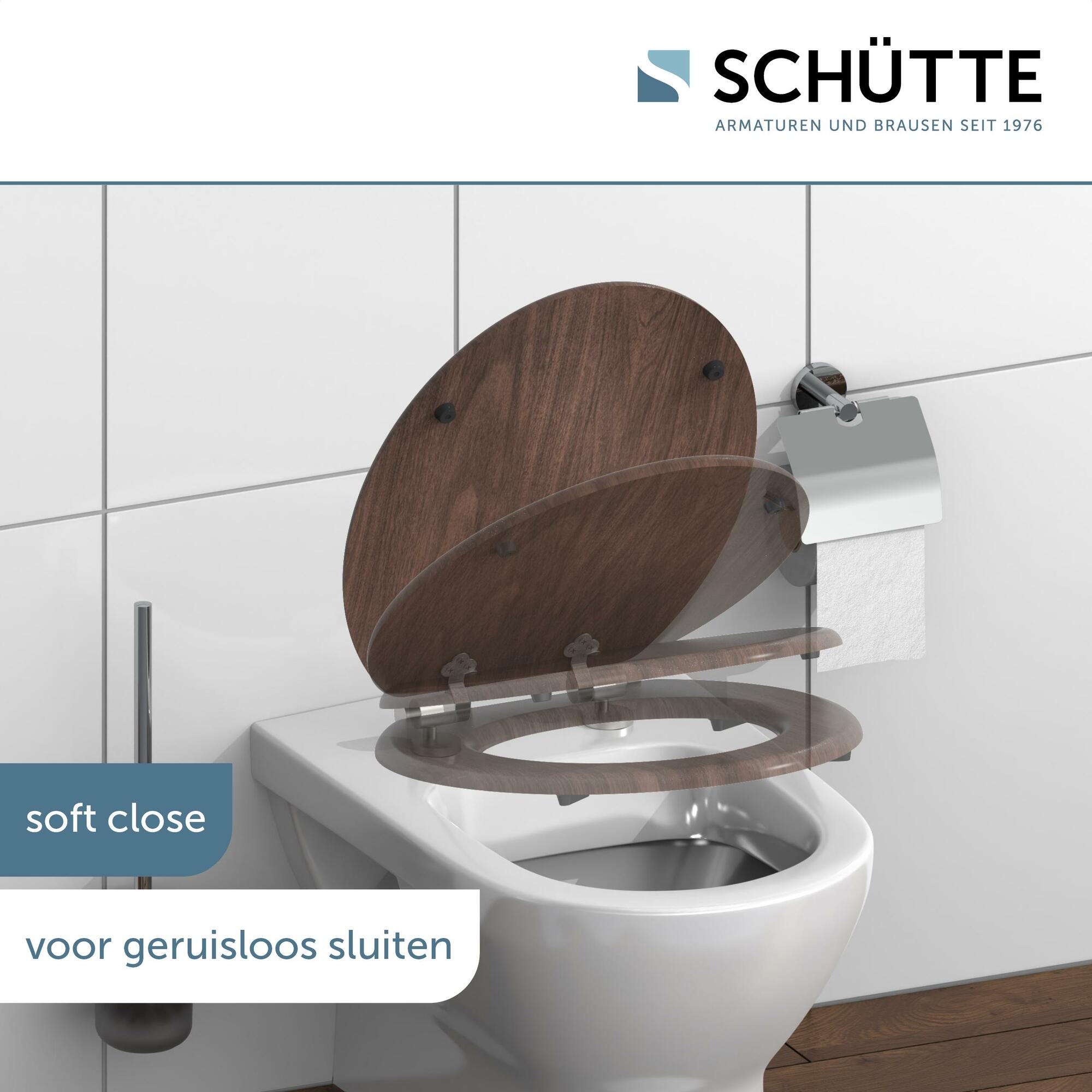 MDF WC-zitting DARK WOOD, met valrem • gemak en functionaliteit: geruisloos sluiten dankzij de scharnieren met valrem • Lange levensduur: extreem breukvast en krasbestendig (MDF) • onderhoudsvriendelijk: gemakkelijk schoon te maken dankzij het poriëngladde oppervlak • standaard formaat: compatibel met alle standaard toiletpotten • eenvoudige installatie: compleet bevestigingsmateriaal inbegrepen