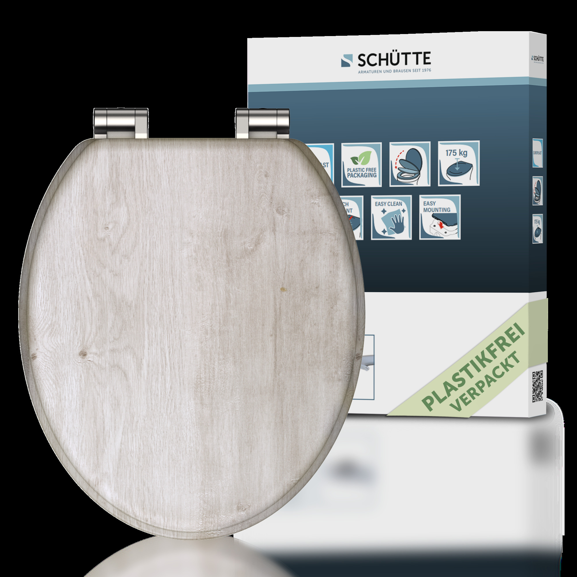 MDF WC-zitting LIGHT WOOD, met valrem • gemak en functionaliteit: geruisloos sluiten dankzij de scharnieren met valrem • Lange levensduur: extreem breukvast en krasbestendig (MDF) • onderhoudsvriendelijk: gemakkelijk schoon te maken dankzij het poriëngladde oppervlak • standaard formaat: compatibel met alle standaard toiletpotten • eenvoudige installatie: compleet bevestigingsmateriaal inbegrepen