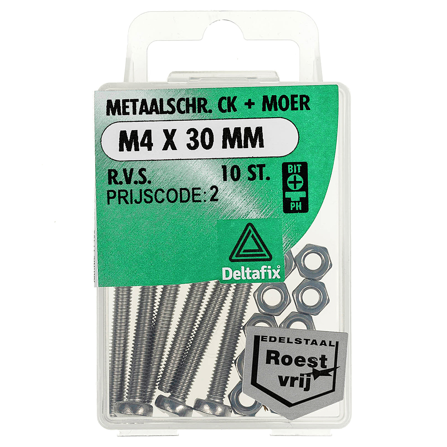 METAALSCHROEF CK + MOER RVS A2 M4 X 30 MM DIN 7985 DIN 934 10ST