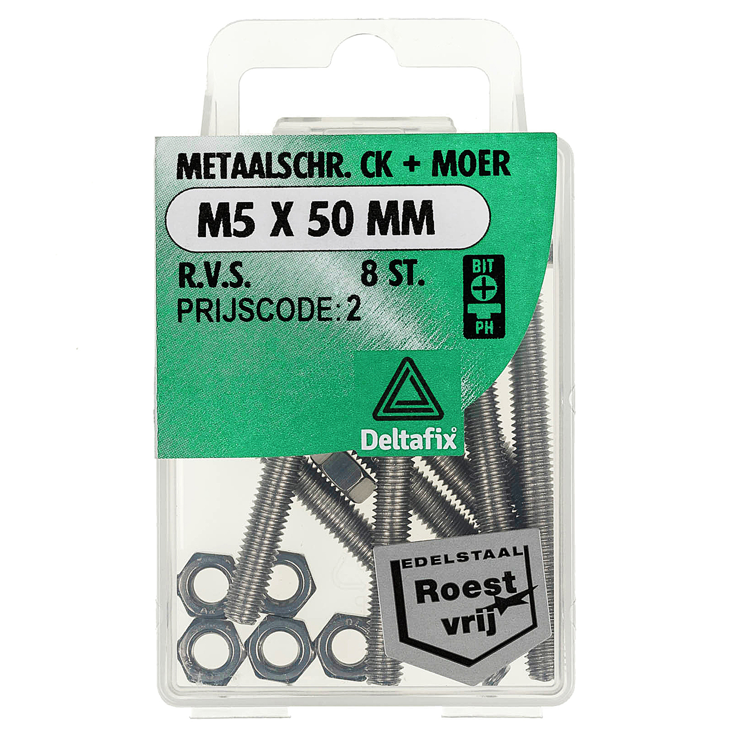 METAALSCHROEF CK + MOER RVS A2 M5 X 50 MM DIN 7985 DIN 934 8ST
