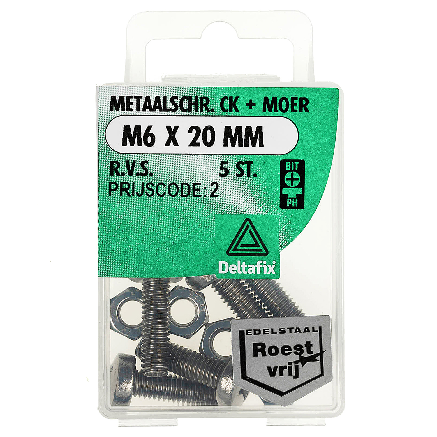METAALSCHROEF CK + MOER RVS A2 M6 X 20 MM DIN 7985 DIN 934 5ST