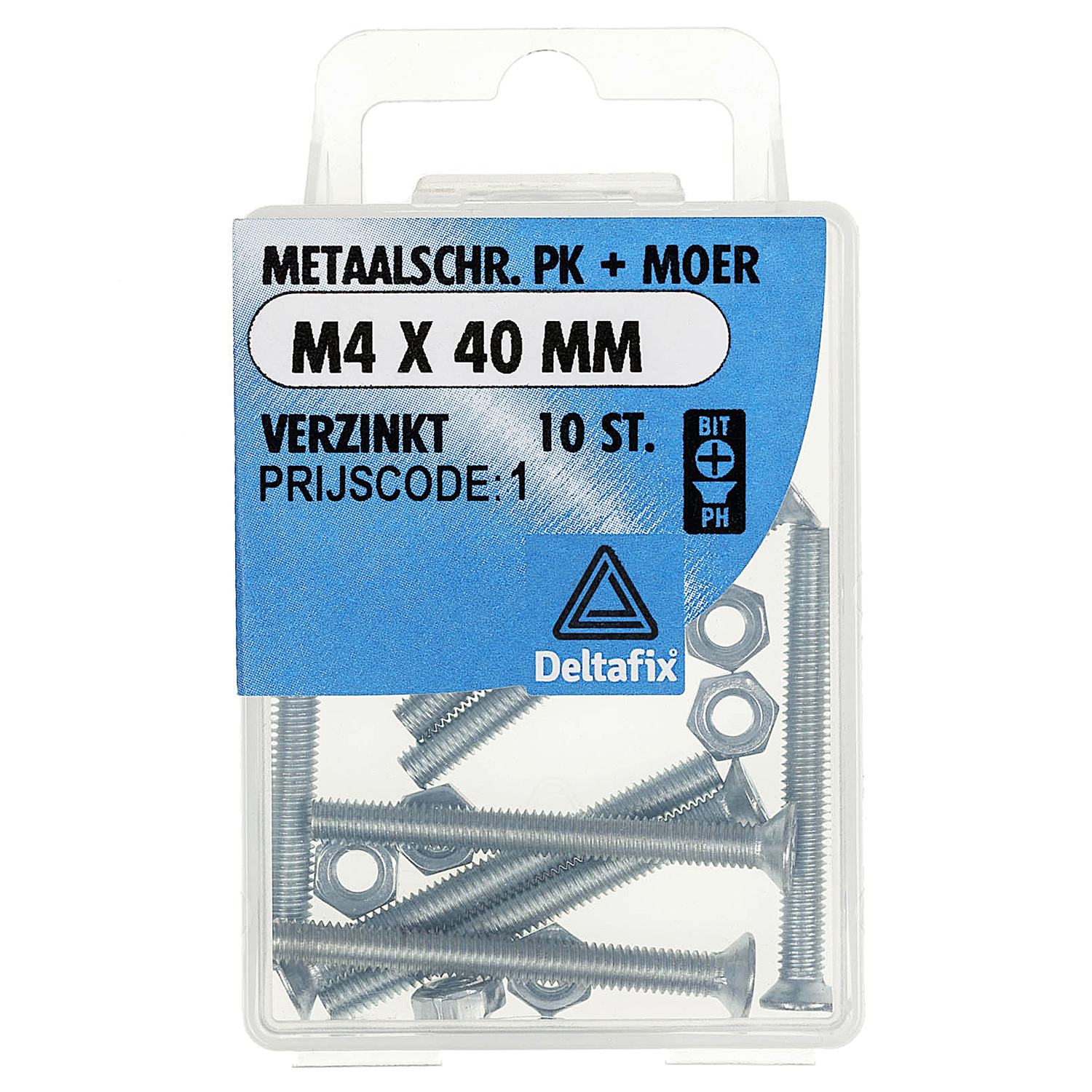 METAALSCHROEF PK + MOER VZ M4 X 40 MM DIN 965 /DIN 934 10ST