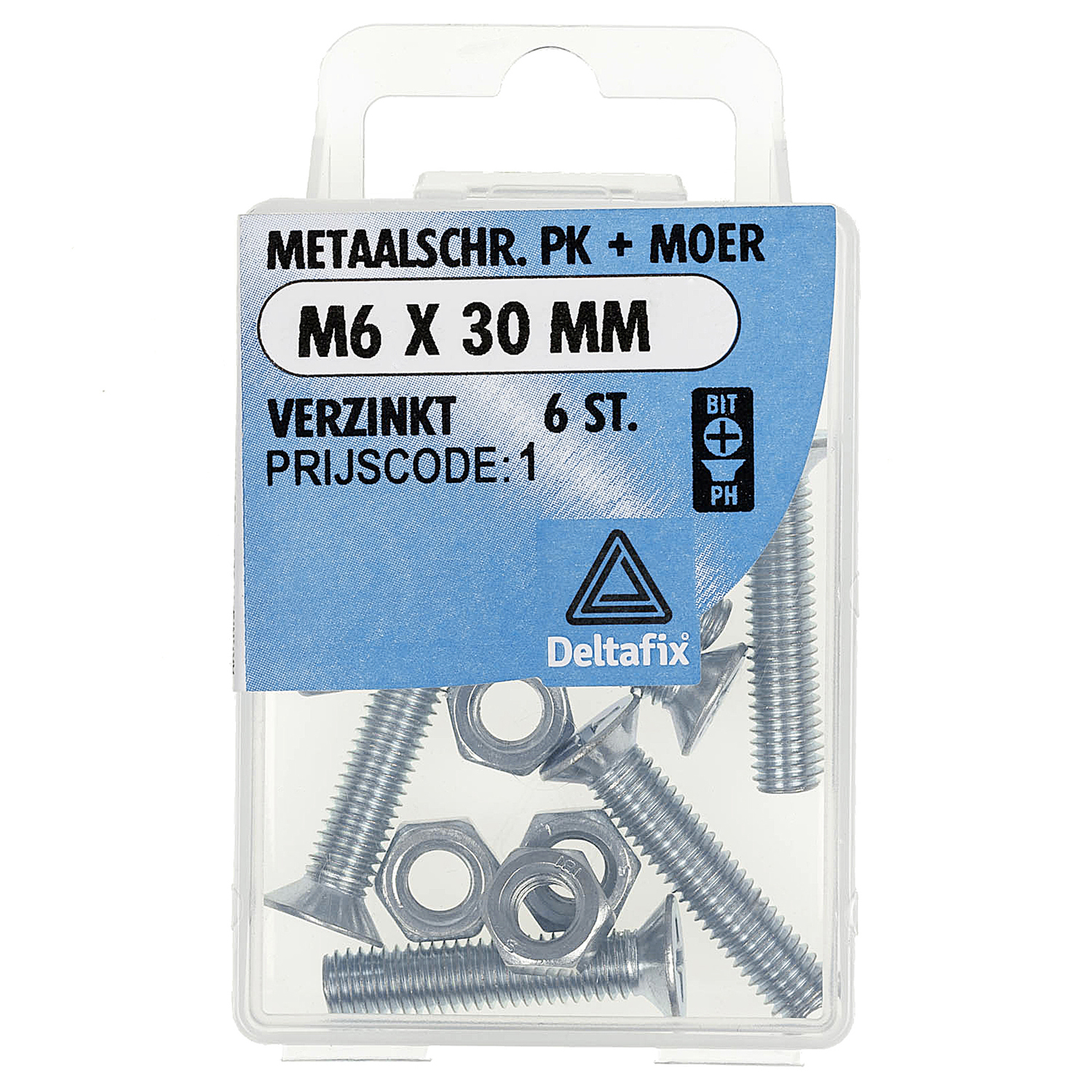 METAALSCHROEF PK + MOER VZ M6 X 30 MM DIN 965 /DIN 934 6ST
