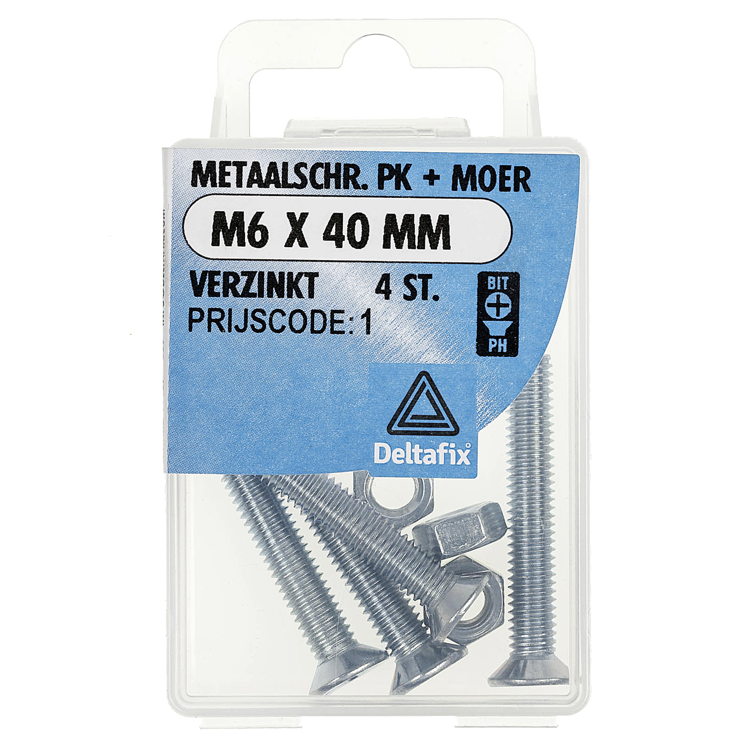 METAALSCHROEF PK + MOER VZ M6 X 40 MM DIN 965 /DIN 934 4ST