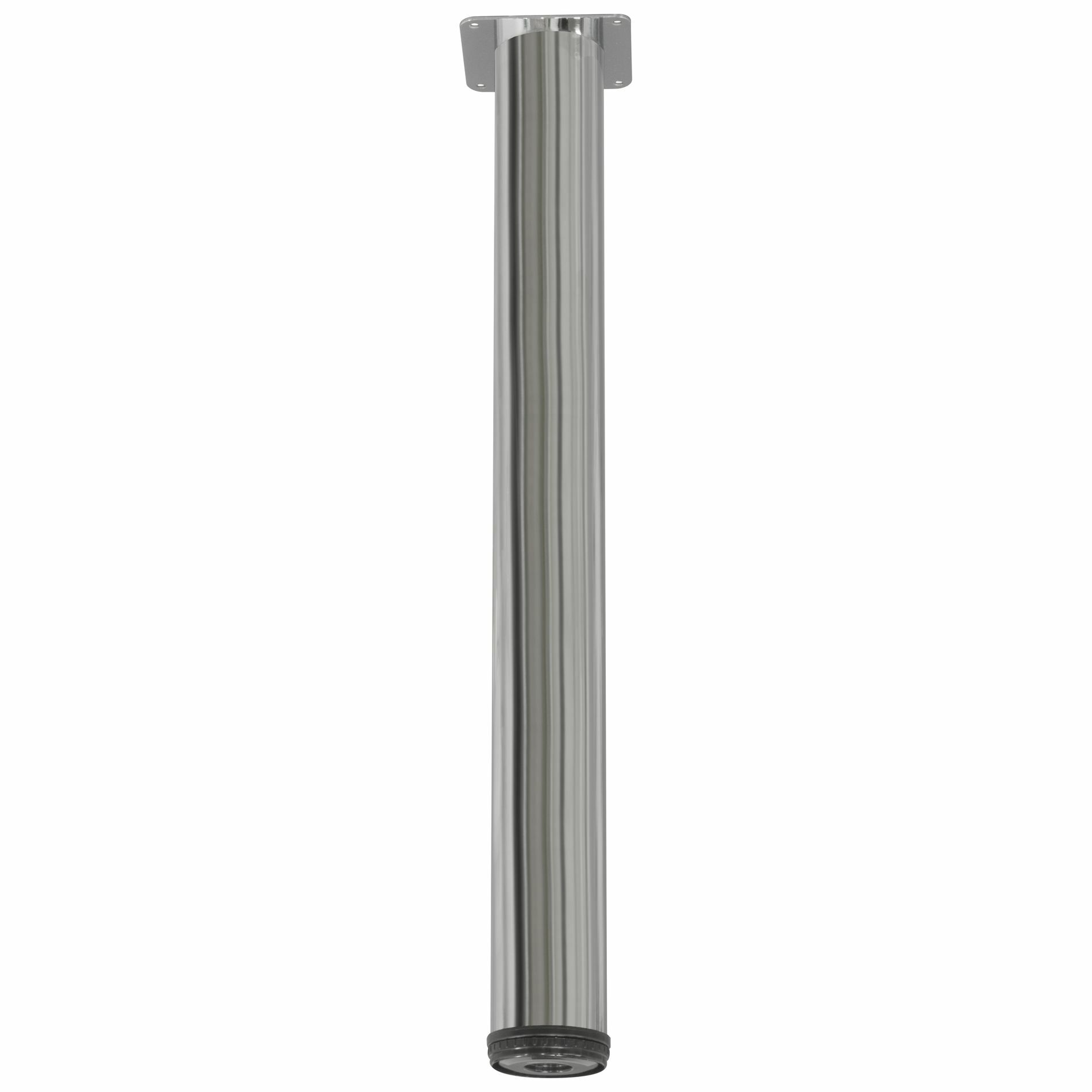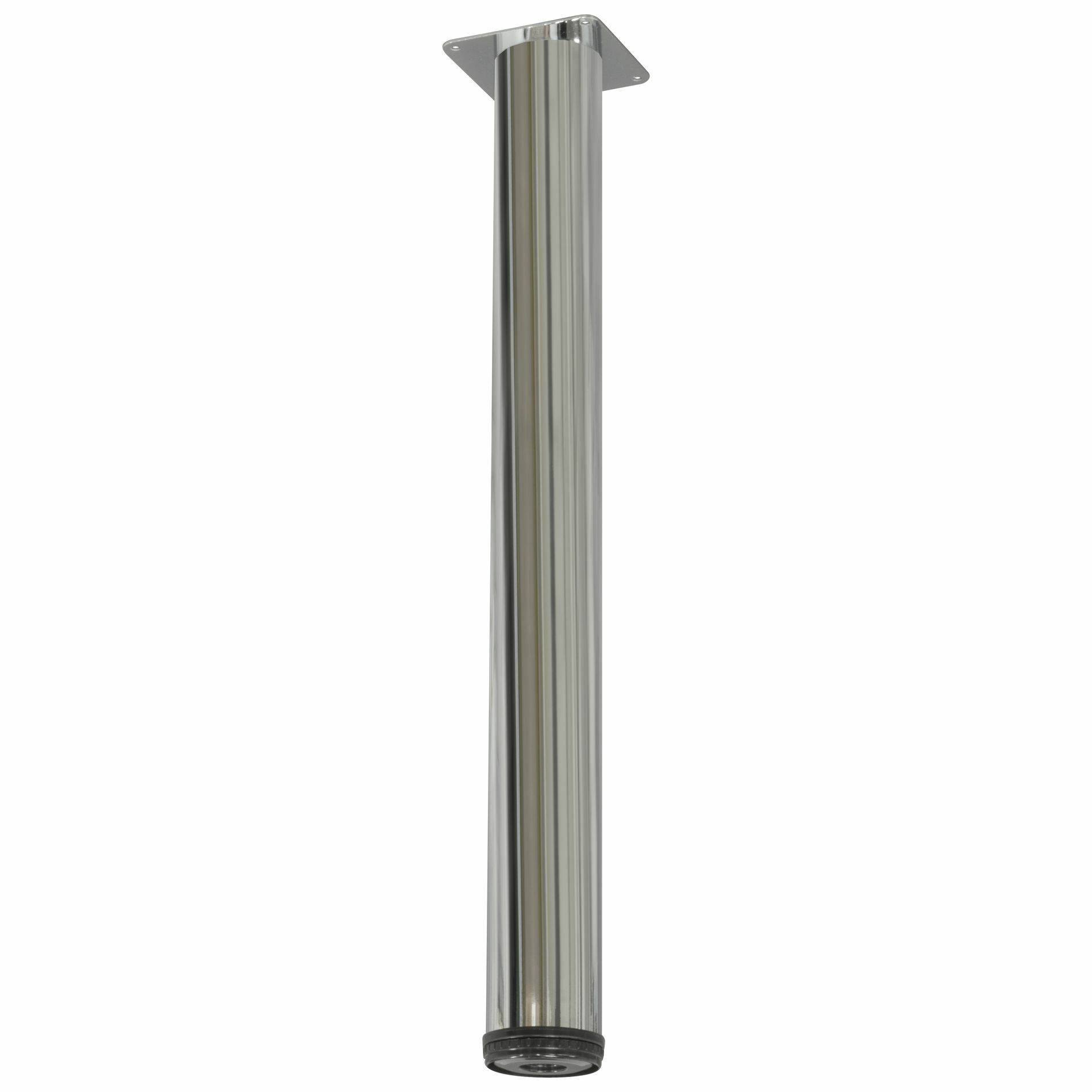 Meubelpoot met een diameter van 7,6cm en hoogte van 72cm. De meubelpoot bevestig je met 4 schroeven aan je meubel. Onderaan deze meubelpoot zit een kunststof (tot max 30mm) verstelbare voet. De meubelpoot is van metaal met een decoratieve chroom-look afwerking. Schroeven zijn niet bijgesloten. Iedere poot mag maximaal belast worden met 40kg. Afneembaar met vochtige doek en niet-agressief schoonmaakmiddel. Het product is geschikt voor gebruik binnenshuis in droge ruimten.