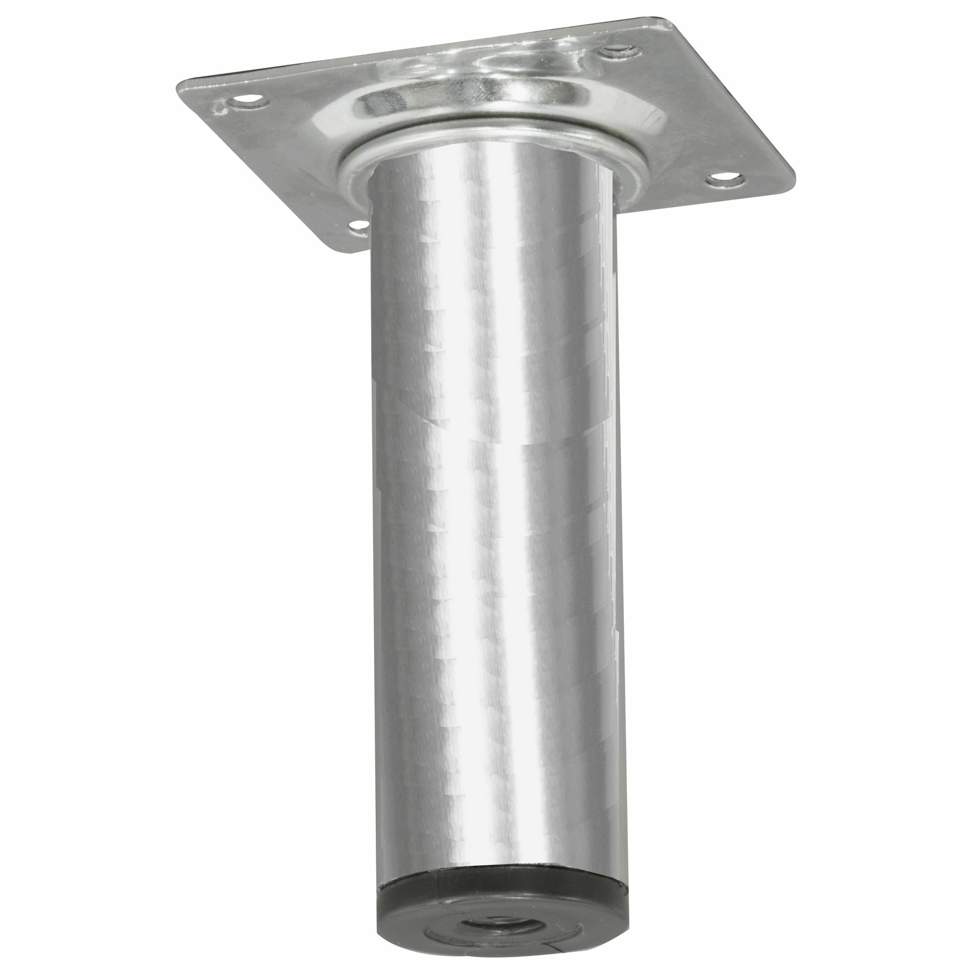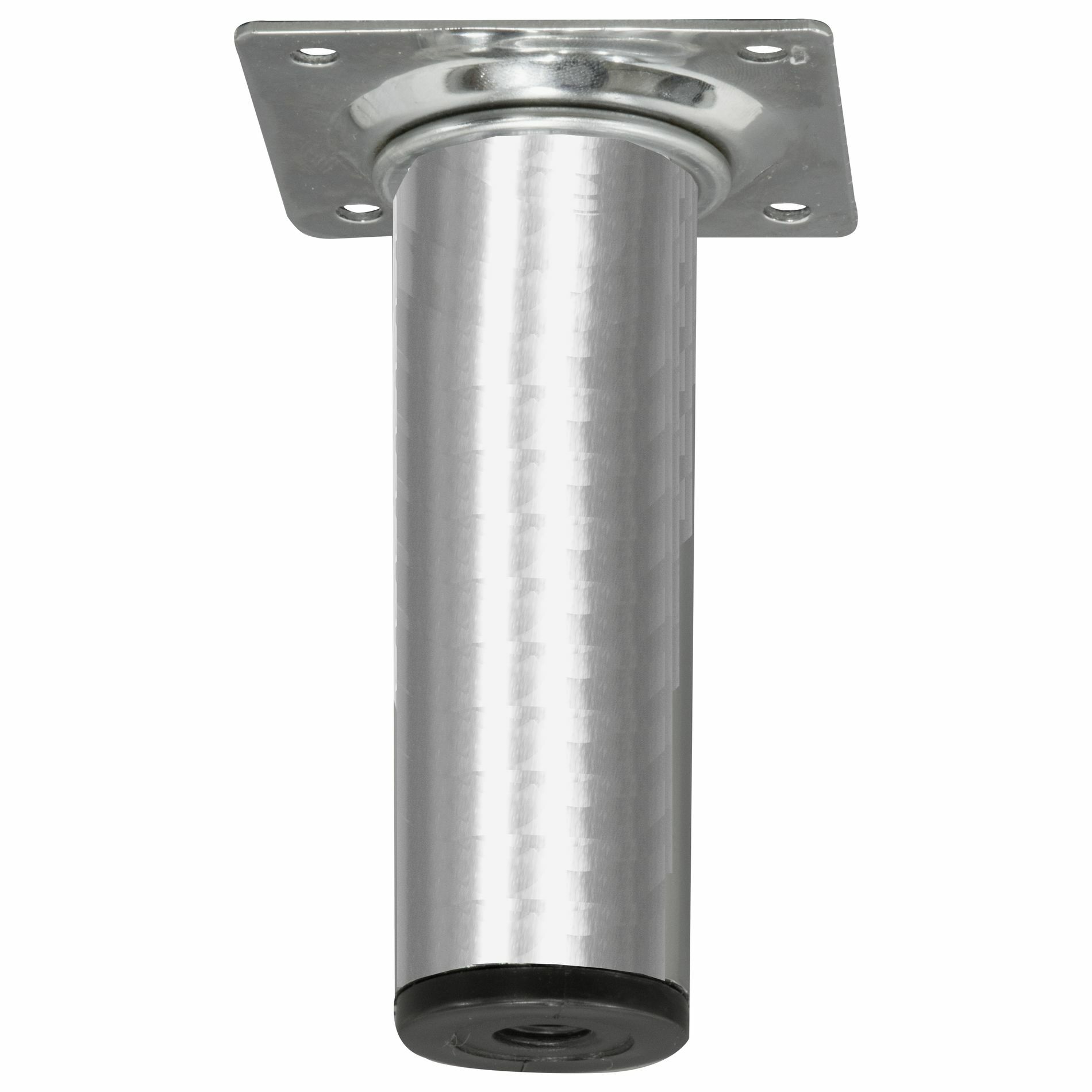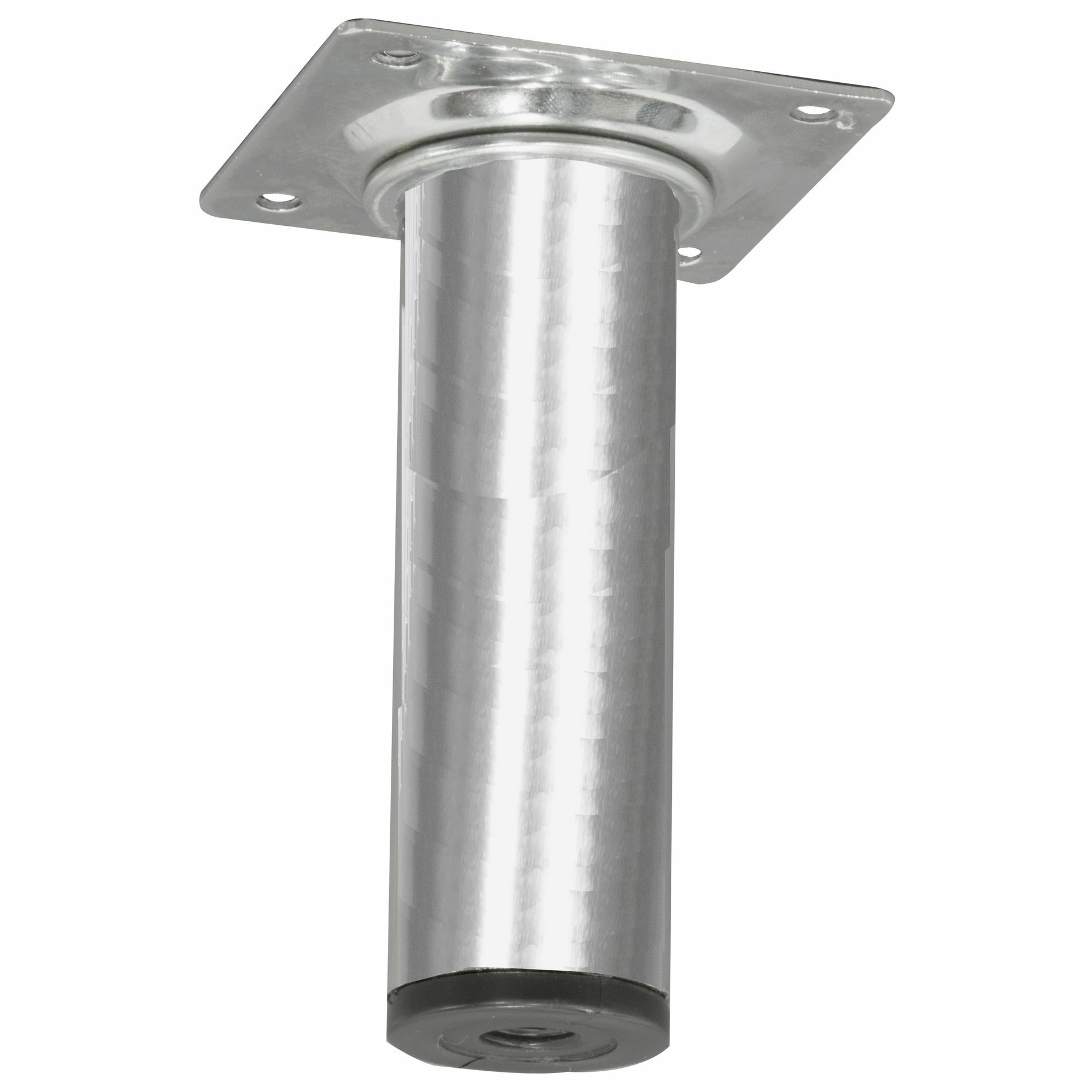 Deze ronde meubelpoot is 3cm dik en 10cm hoog. De meubelpoot bevestig je met 4 schroeven aan je meubel. Onder de meubelpoot is een stelvoet te schroeven; je meubelpoot wordt daar 1cm hoger van. De stelvoet kun je maximaal uitdraaien tot 3cm. De kastpoot is van metaal met een decoratieve chroom-look afwerking. Schroeven zijn niet bijgesloten. Afneembaar met vochtige doek en niet-agressief schoonmaakmiddel. Het product is geschikt voor gebruik binnenshuis in droge ruimten.