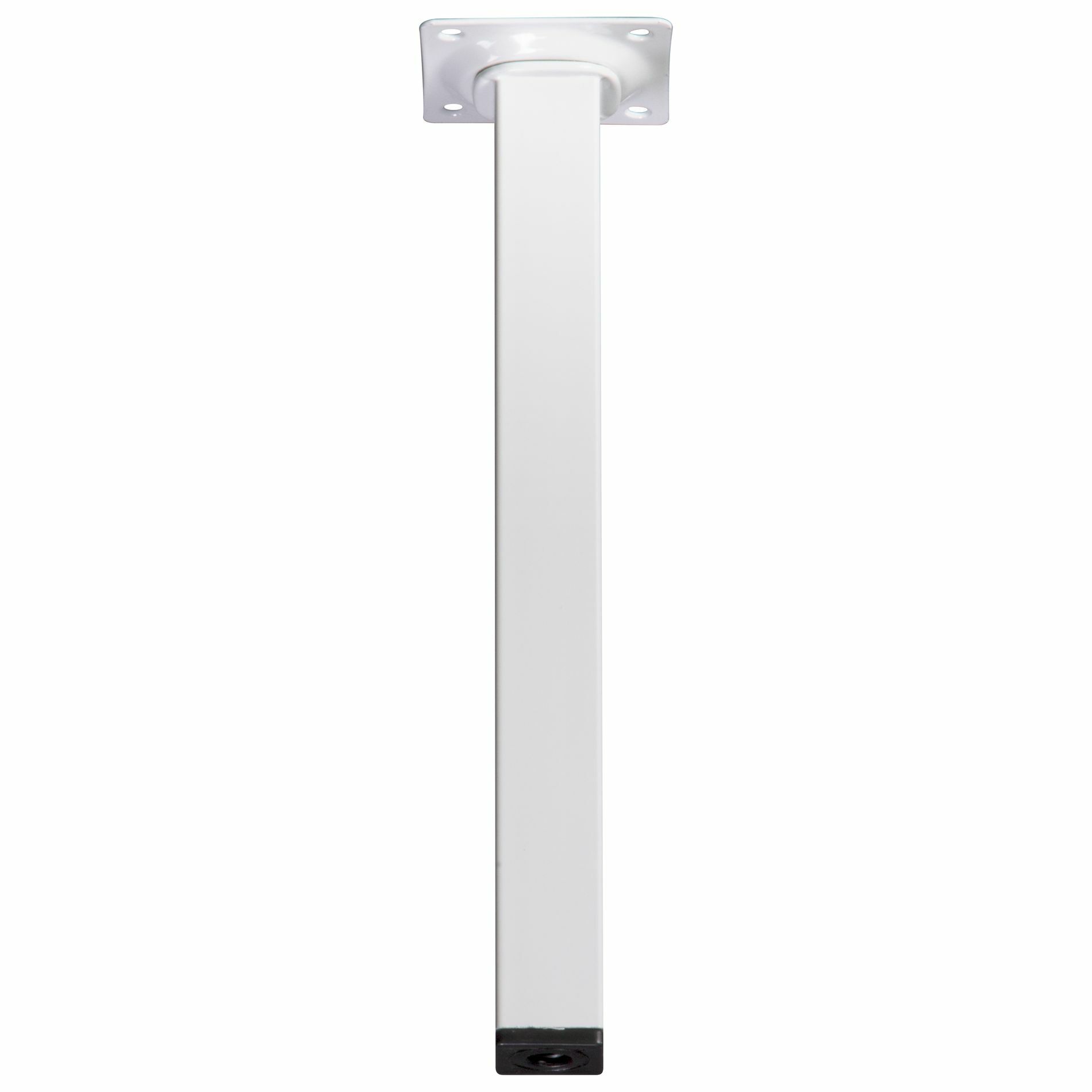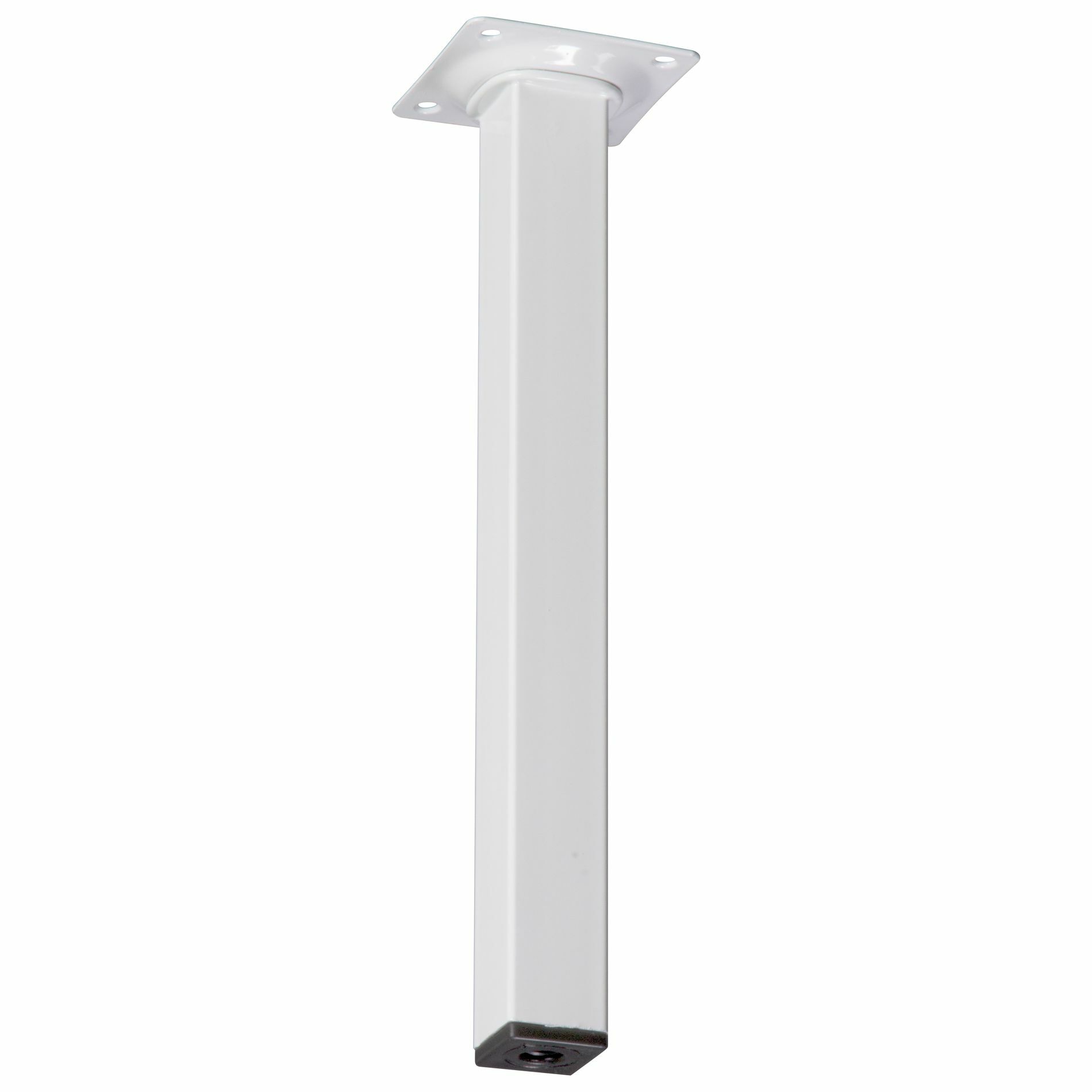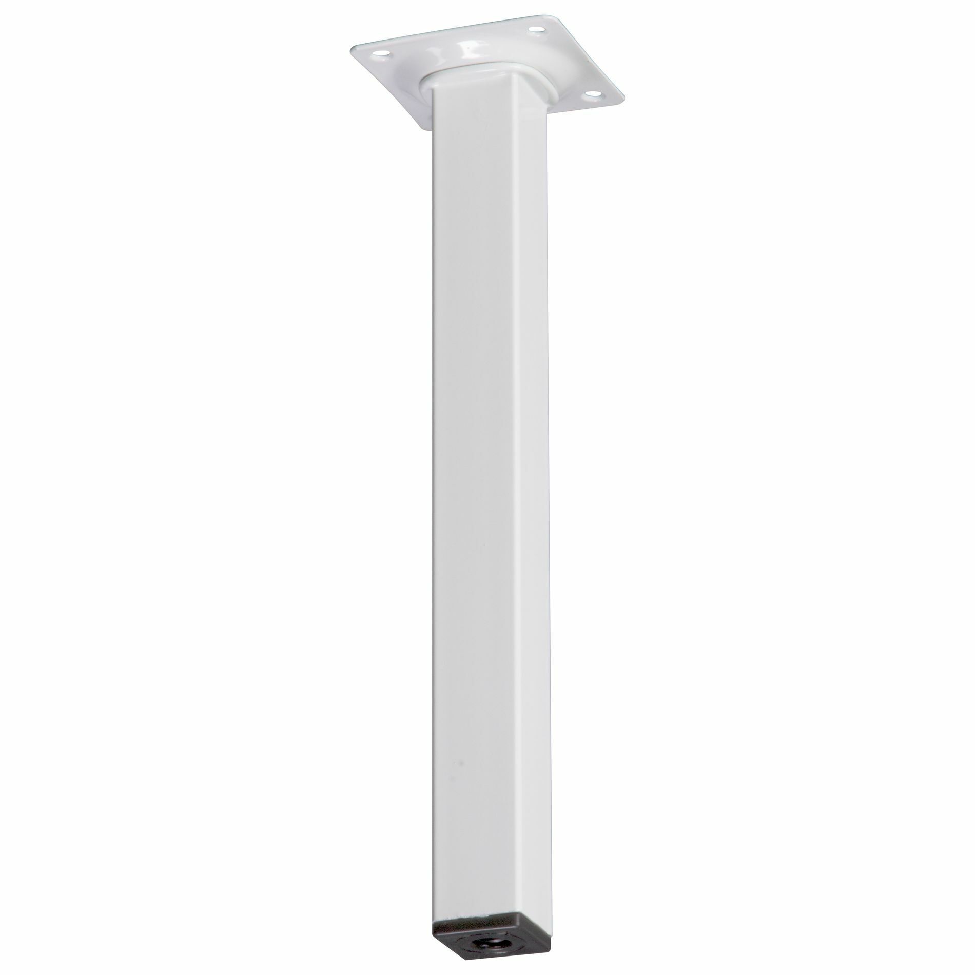 Deze vierkante meubelpoot is 2,5cm breed aan alle zijden en is 25cm hoog. De meubelpoot bevestig je met 4 schroeven aan je meubel. Onder de meubelpoot is een stelvoet te schroeven; je meubelpoot wordt daar 1cm hoger van. De stelvoet kun je maximaal uitdraaien tot 3cm. De meubelpoot is van metaal in de kleur wit. Schroeven zijn niet bijgesloten. Afneembaar met vochtige doek en niet-agressief schoonmaakmiddel. Het product is geschikt voor gebruik binnenshuis in droge ruimten.