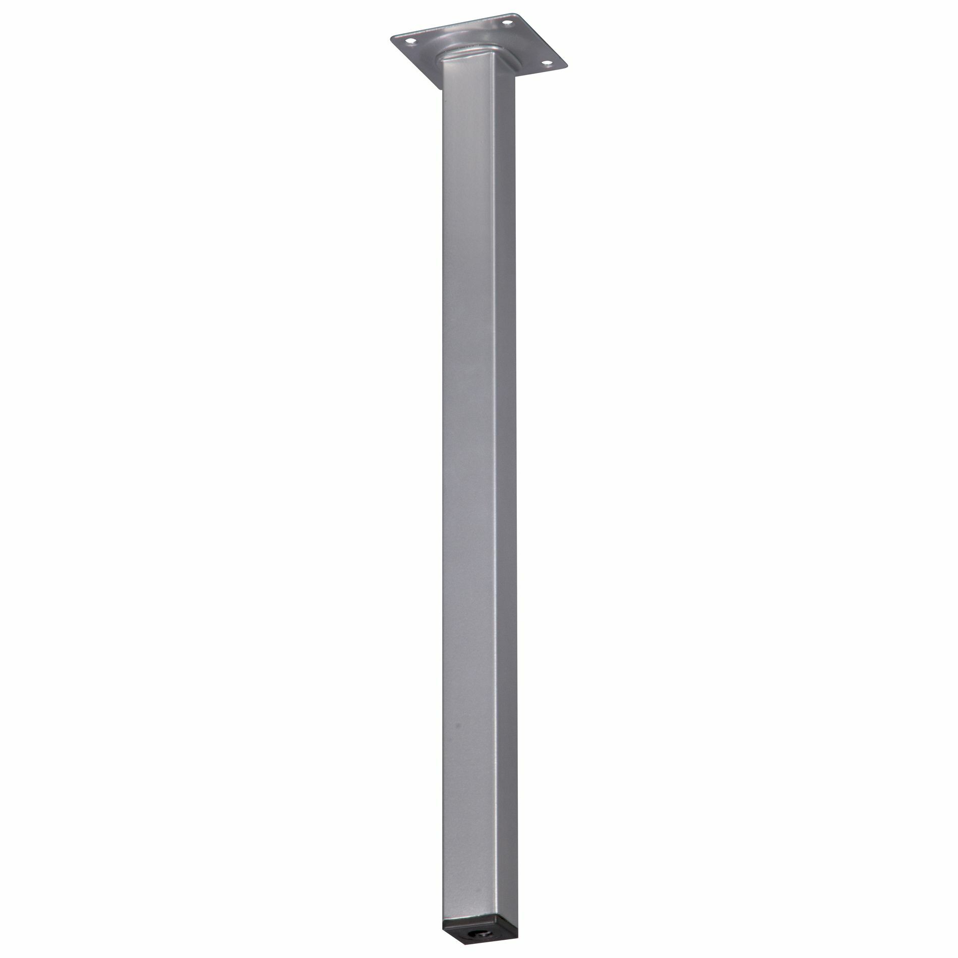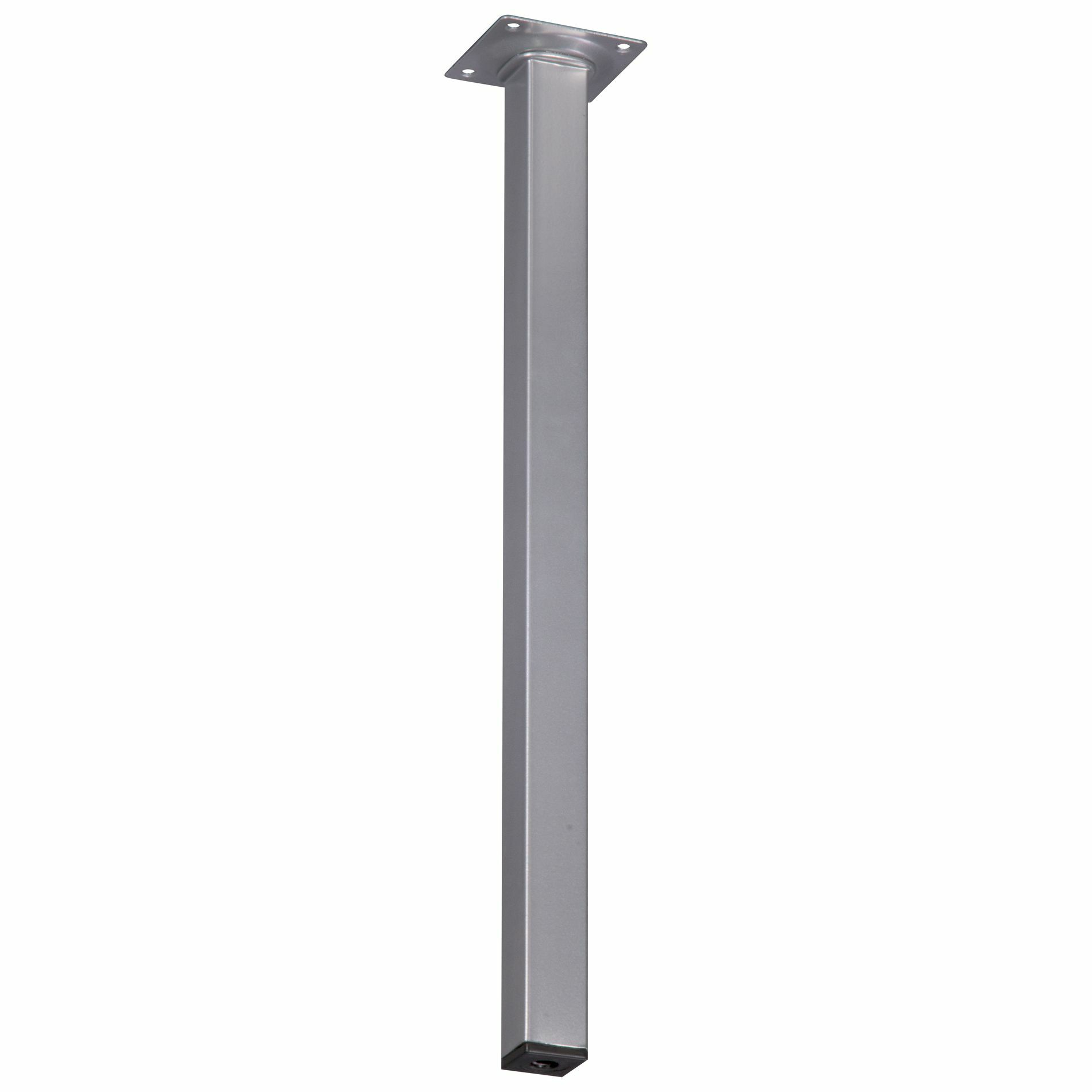 Deze vierkante meubelpoot is 2,5cm breed aan alle zijden en is 40cm hoog. De meubelpoot bevestig je met 4 schroeven aan je meubel. Onder de meubelpoot is een stelvoet te schroeven; je meubelpoot wordt daar 1cm hoger van. De stelvoet kun je maximaal uitdraaien tot 3cm. De meubelpoot is van metaal met een decoratieve aluminium-look afwerking. Schroeven zijn niet bijgesloten. Afneembaar met vochtige doek en niet-agressief schoonmaakmiddel. Het product is geschikt voor gebruik binnenshuis in droge ruimten.