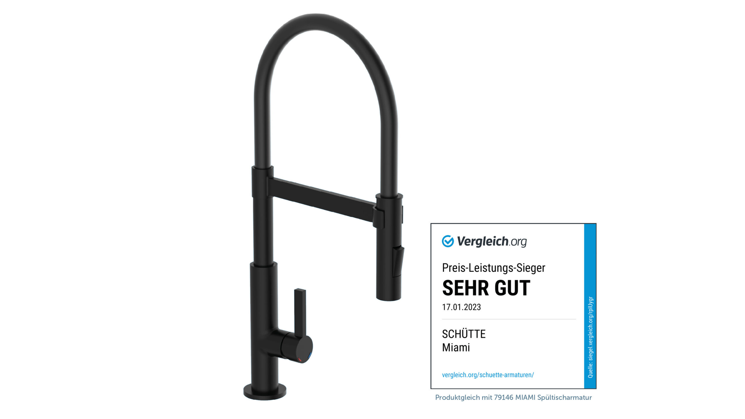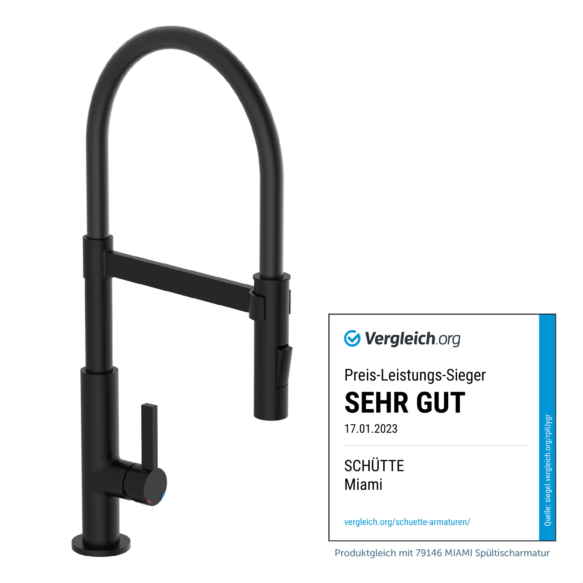 MIAMI Keukenkraan, mat zwart, met soft-touch slang • Flexibele soft-touch slang • nauwkeurige hantering door magnetische houder • praktische cold-start functie om energie te besparen • 360° draaibare uitloop • sproeier met 2 straalsoorten • geluidsarme, uitwisselbare 25 mm keramische cartridge • extra eenvoudige montage door centrale bevestigingsmoer • flexibele aansluitslangen ca. 500 mm • merk straalregelaar voor een perfect straalbeeld • Garantie: 5 jaar