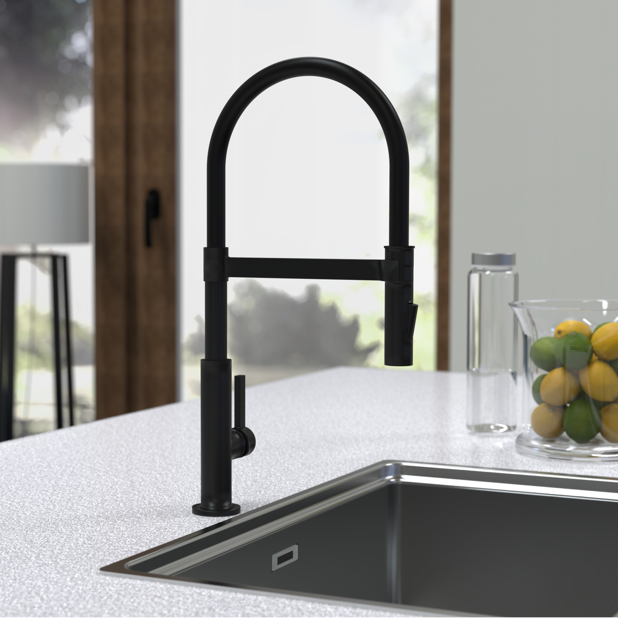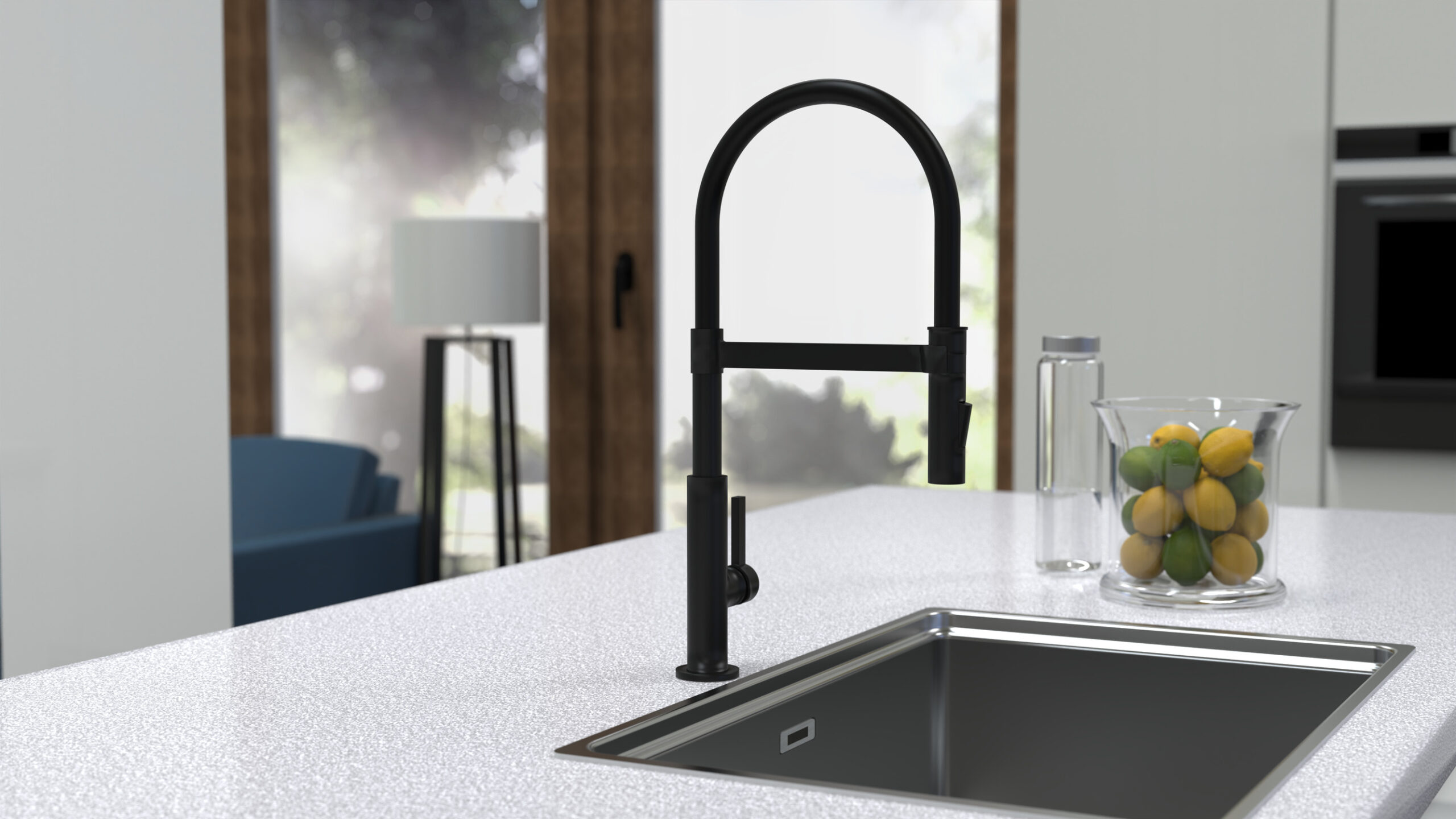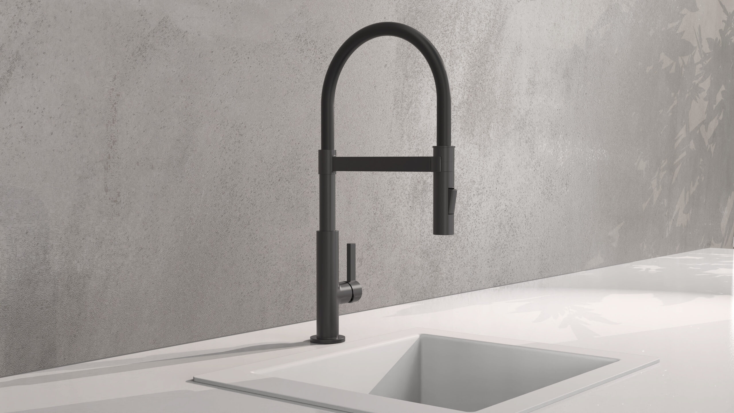 MIAMI KEUKENKRAAN, MAT ZWART, MET SOFT-TOUCH SLANG