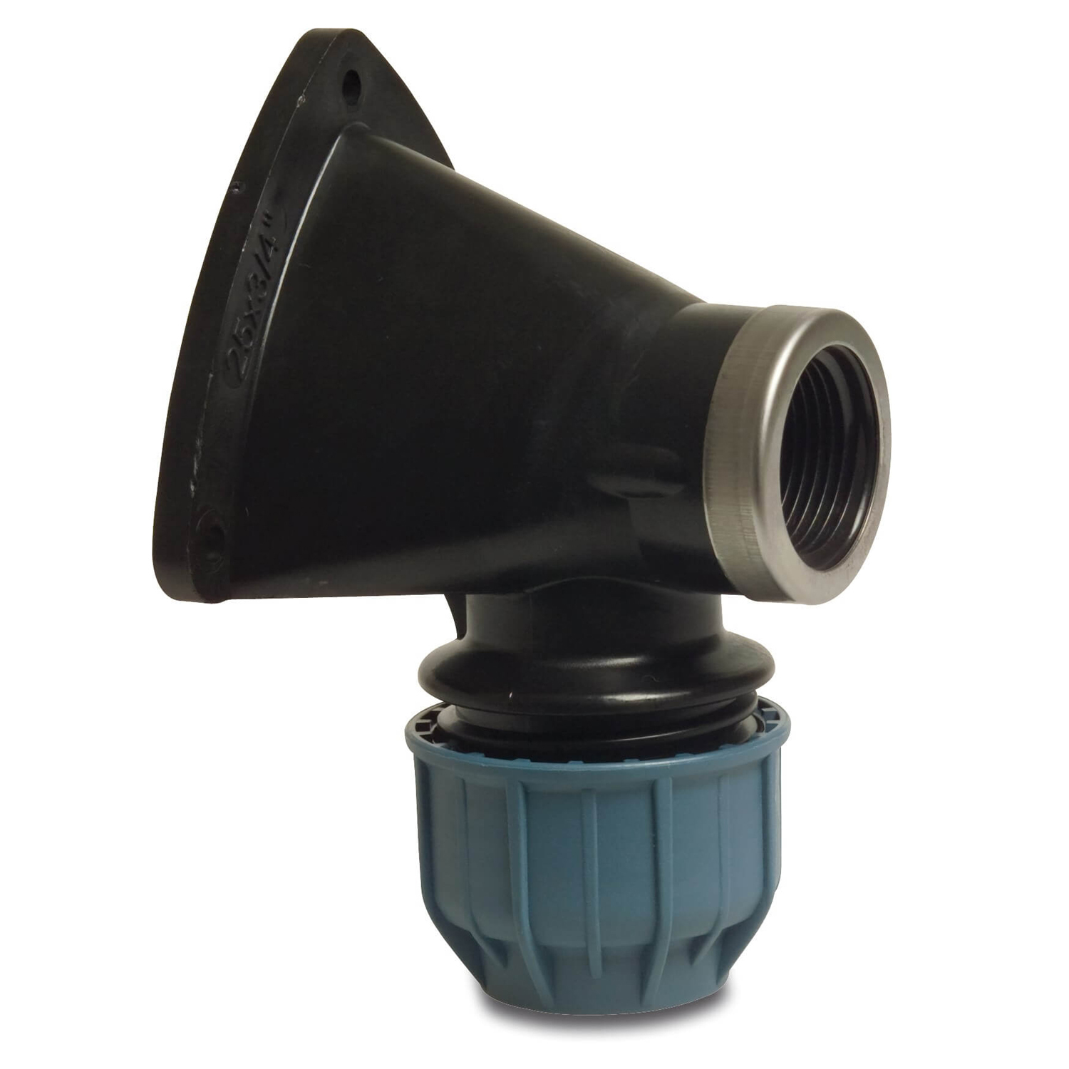 MUURPLAAT 90° PP 25 MM X 3/4 INCH KNEL BINNENDRAAD 16BAR ZWART KIWA