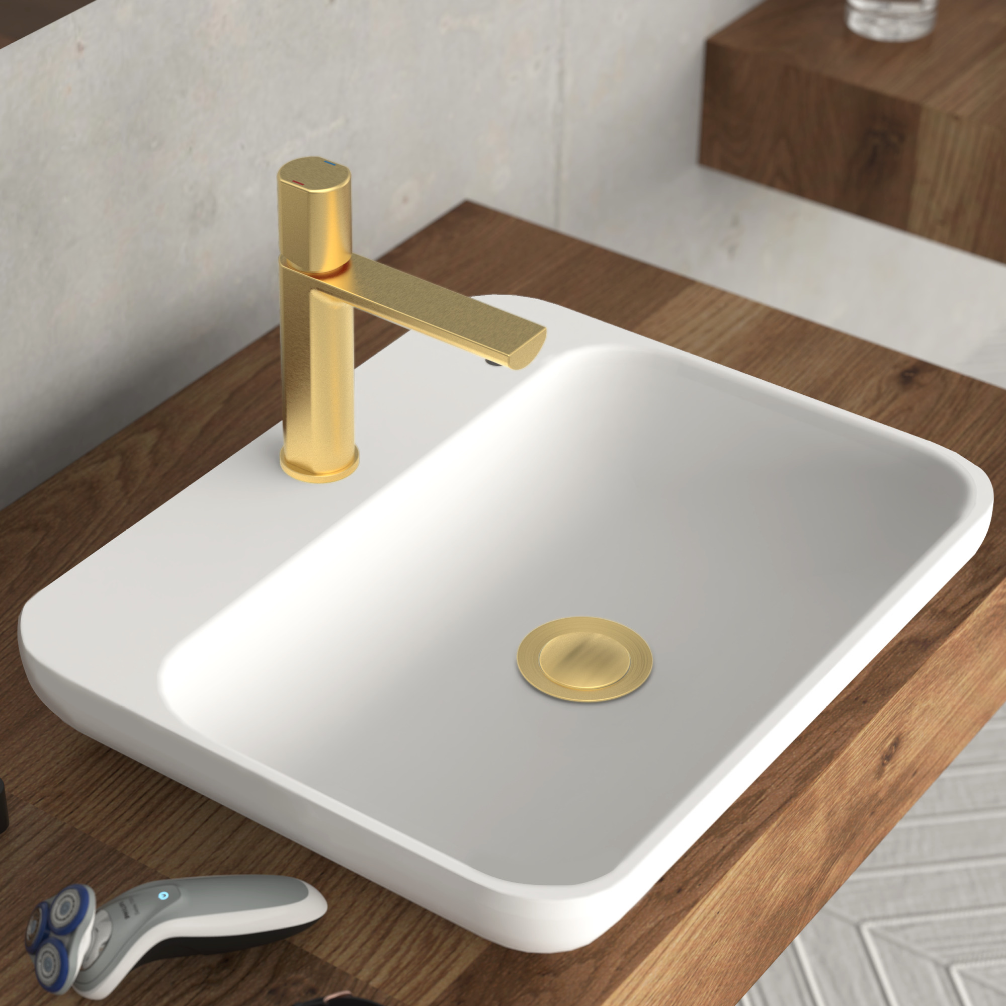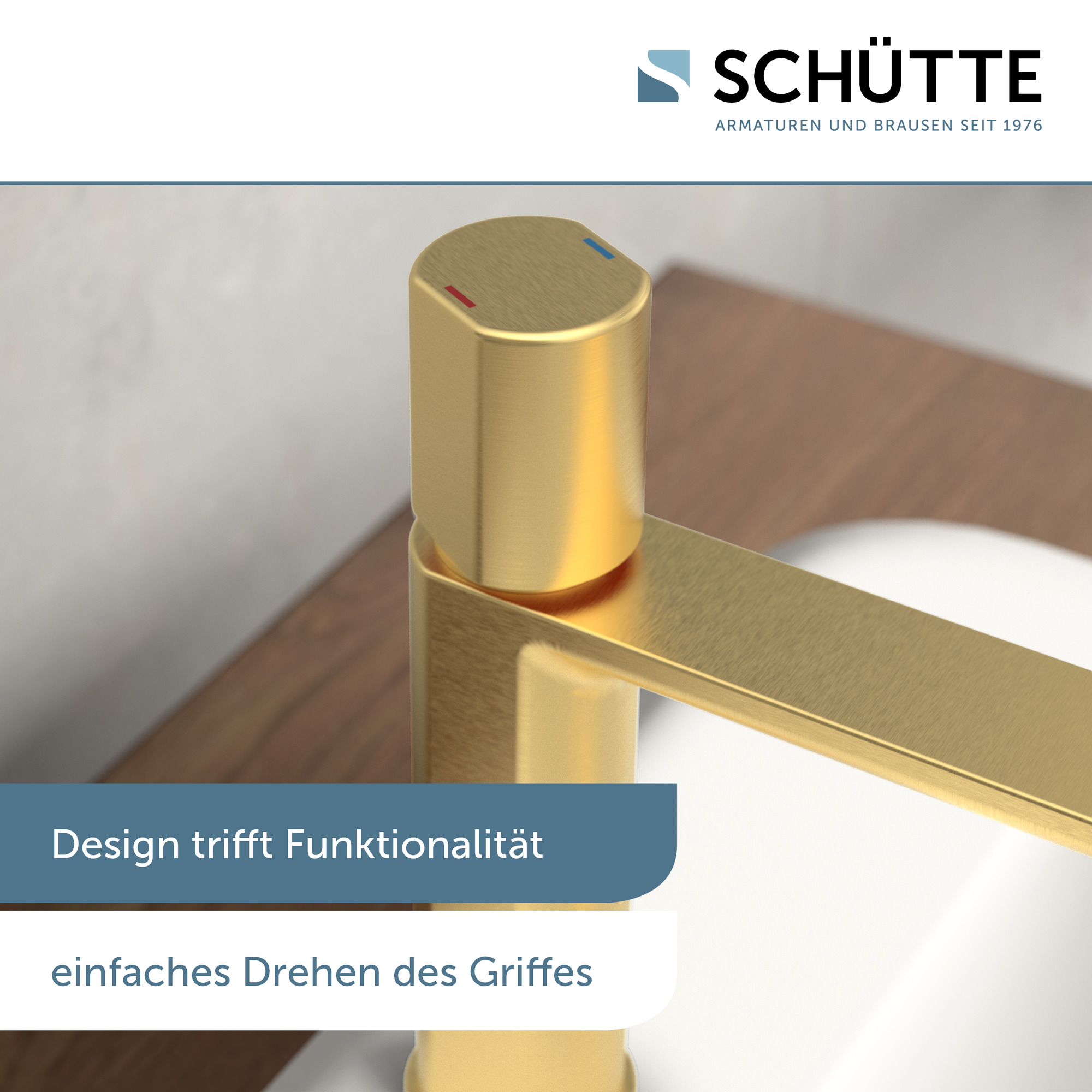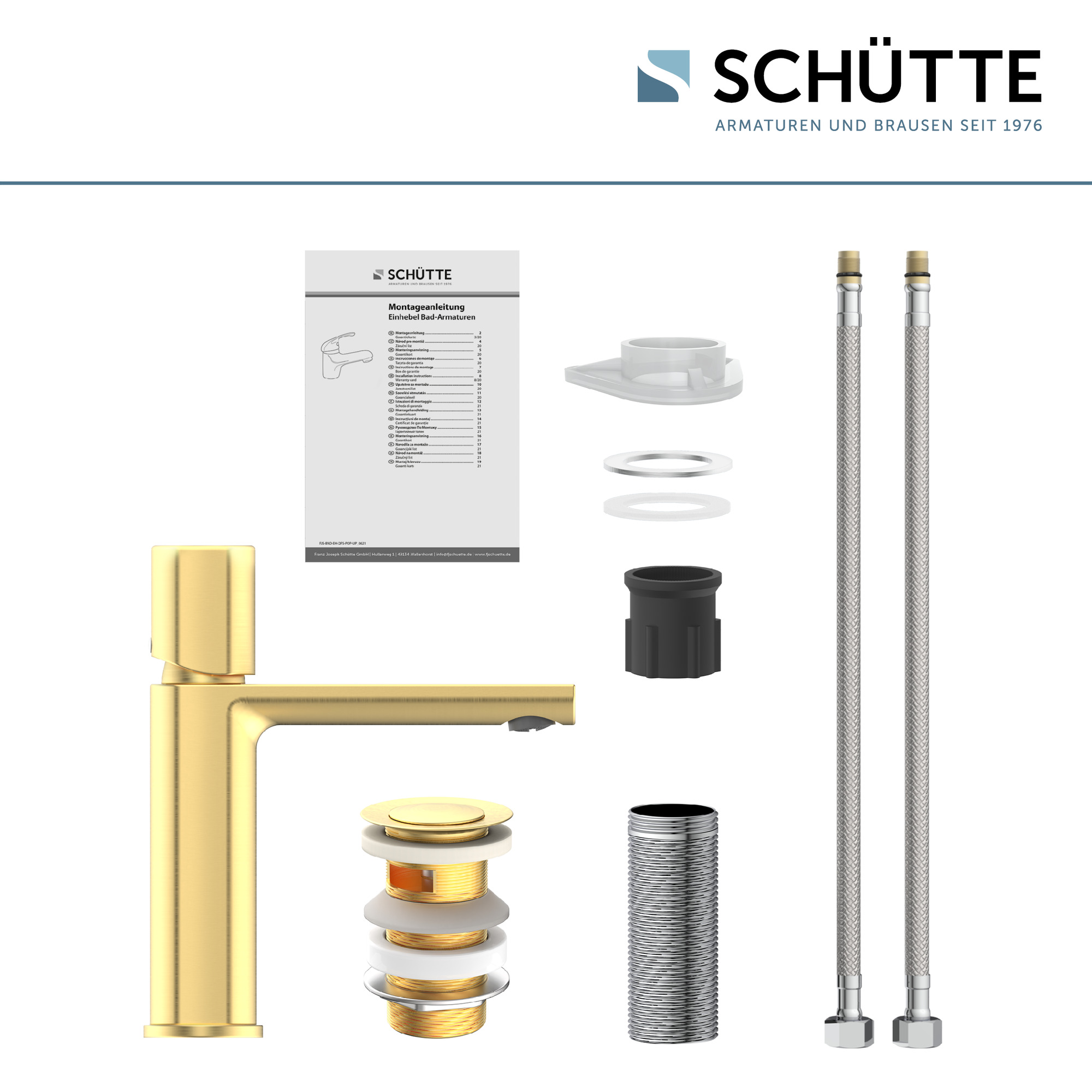 NEW YORK Wastafelkraan, mat goud • 1 ¼” (Ø ca. 4 cm) quick-clac afvoerplug van metaal • Gat voor excentrische bediening beschikbaar • merkstraalregelaar voor een perfect spuitpatroon • geluidarme, uitwisselbare 25 mm keramische cartridge • flexibele aansluitslangen ca. 500 mm • extra eenvoudige montage door centrale bevestigingsmoer • Garantie: 5 jaar