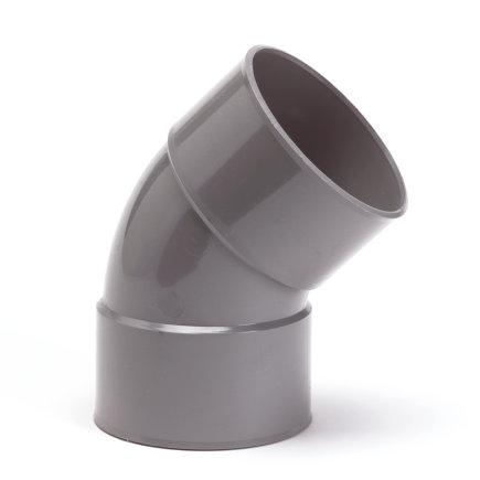 Deze 45° bocht is uitgevoerd in 2x inwendig lijm en wordt gebruikt voor binnenriolering.