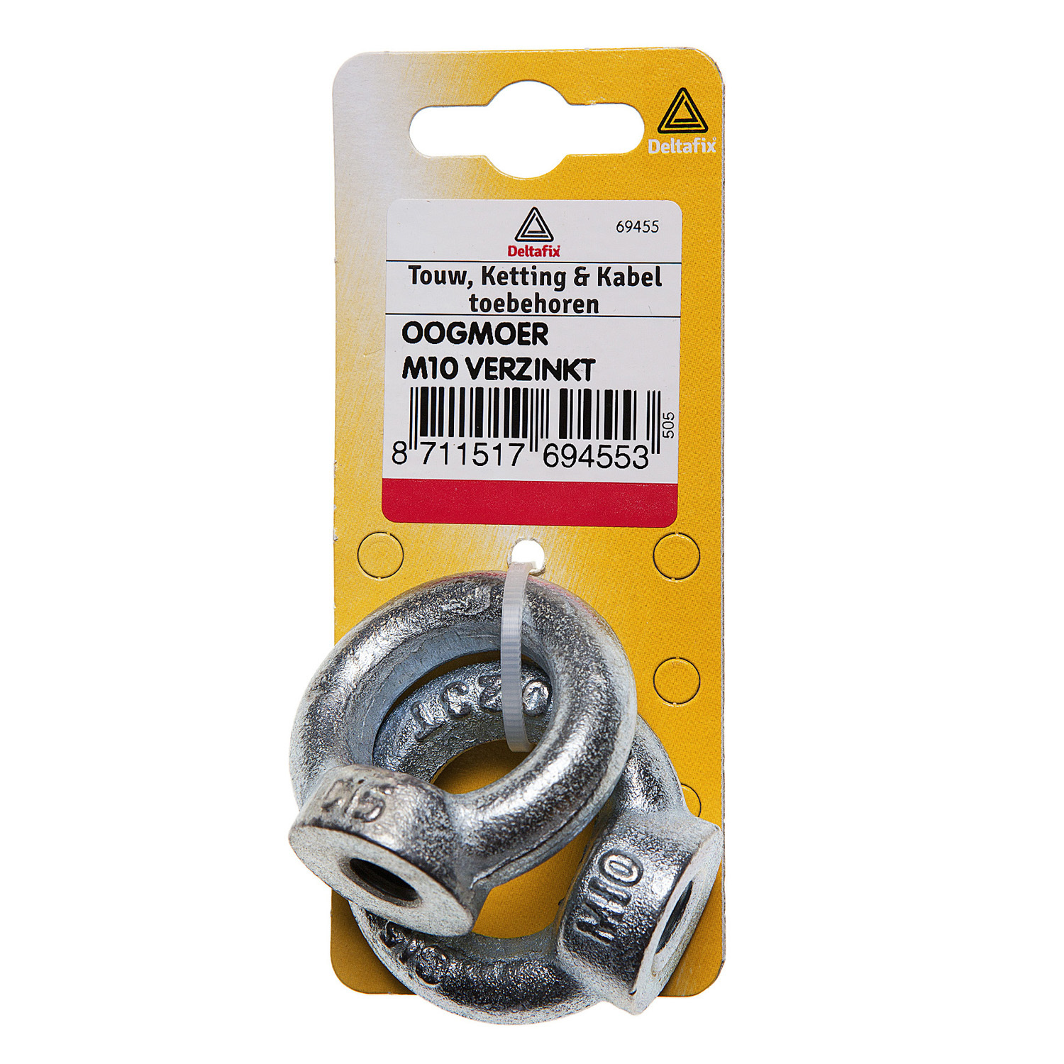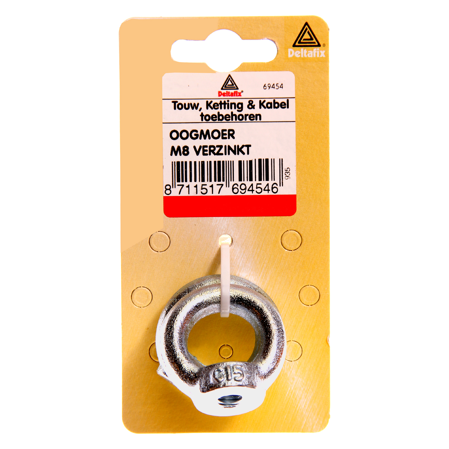 De oogmoer s gemaakt van vrezinkt staal. Een oogmoer is erg makkelijk om iets aan op te hangen met behulp van een karabijnhaak of door er een lijn doorheen te steken.