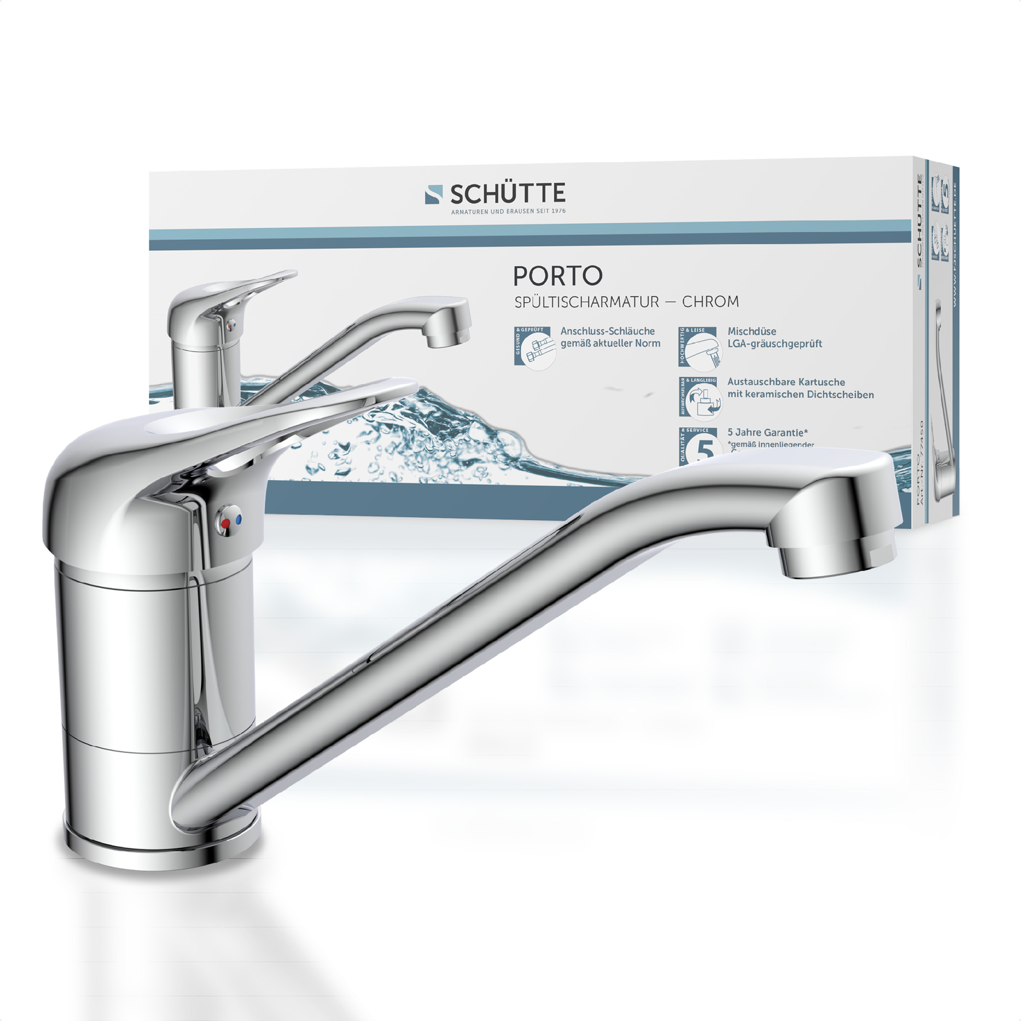 PORTO Keukenkraan, chroom • 360° draaibare uitloop • geluidsarme, uitwisselbare 40 mm keramische cartridge • flexibele aansluitslangen ca. 400 mm • merk straalregelaar voor een perfect straalbeeld • Garantie: 5 jaar