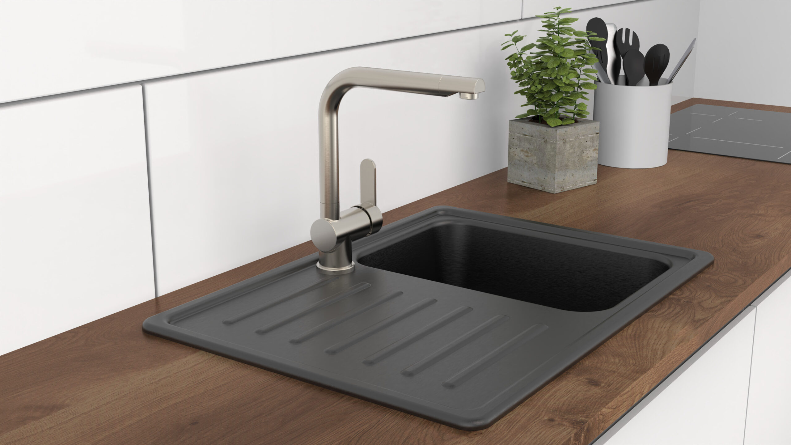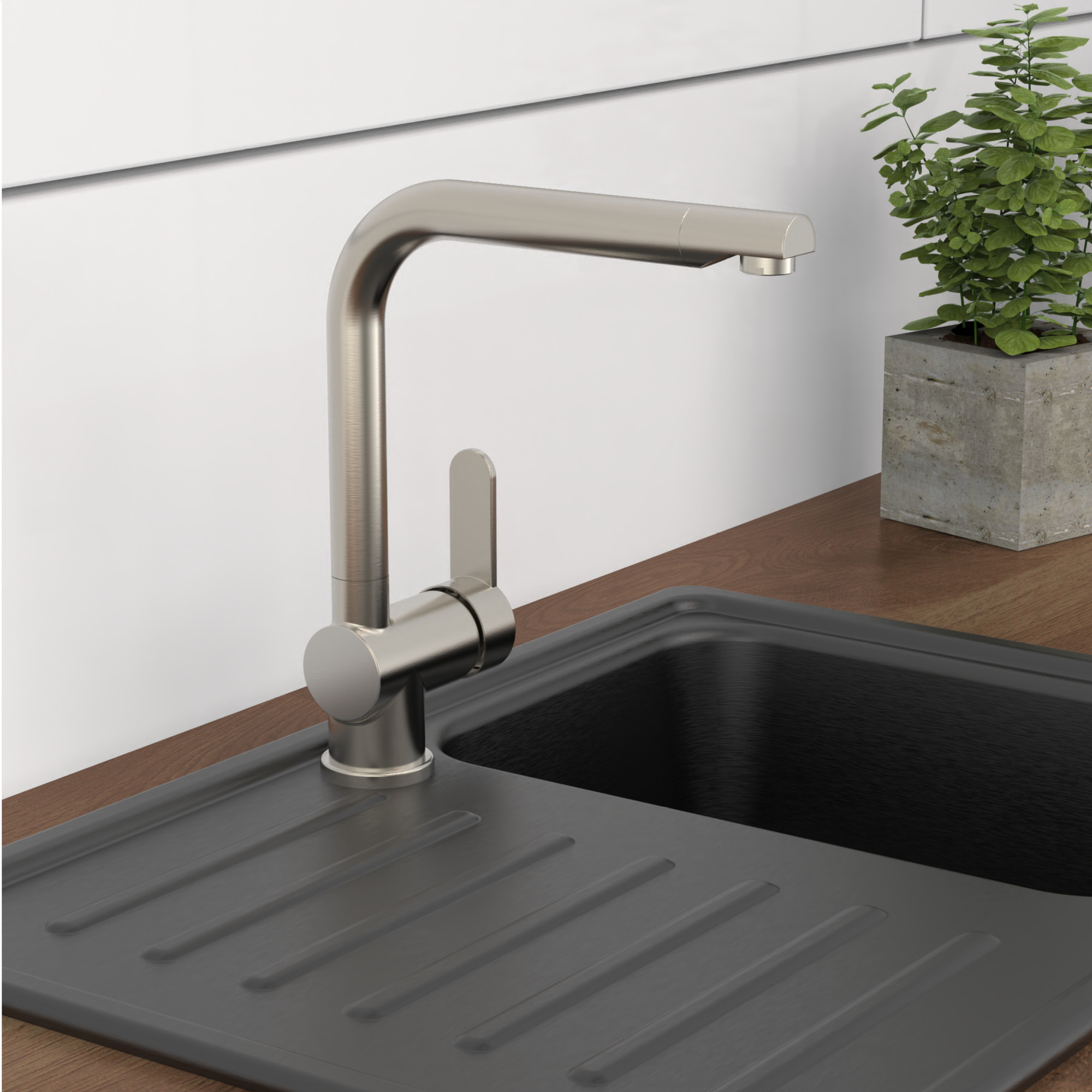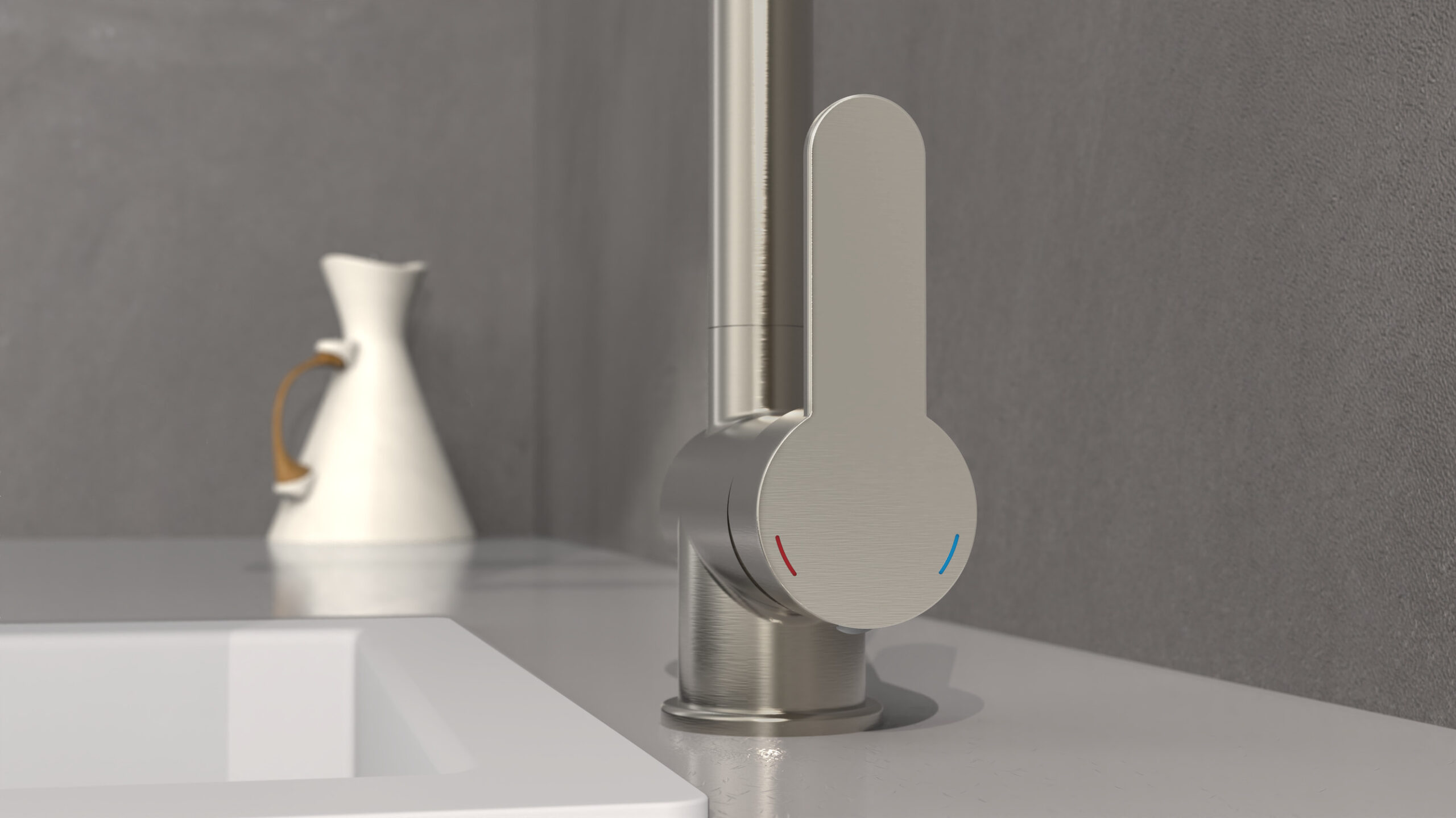 RIO Keukenkraan, RVS look • praktische cold-start functie om energie te besparen • 360° draaibare uitloop • geluidsarme, uitwisselbare 40 mm keramische cartridge • extra eenvoudige montage door centrale bevestigingsmoer • merk straalregelaar voor een perfect straalbeeld • flexibele aansluitslangen ca. 500 mm • Garantie: 5 jaar