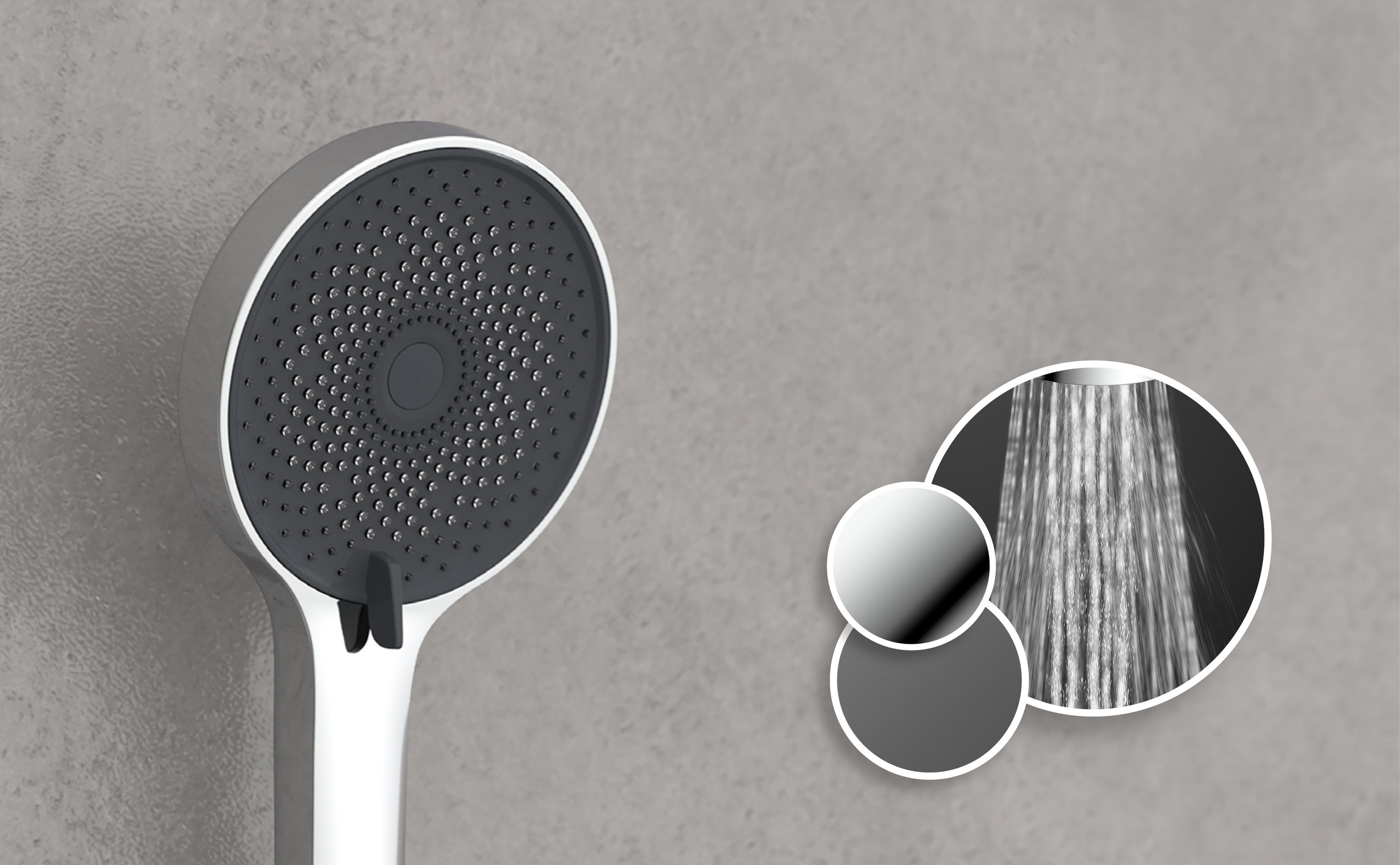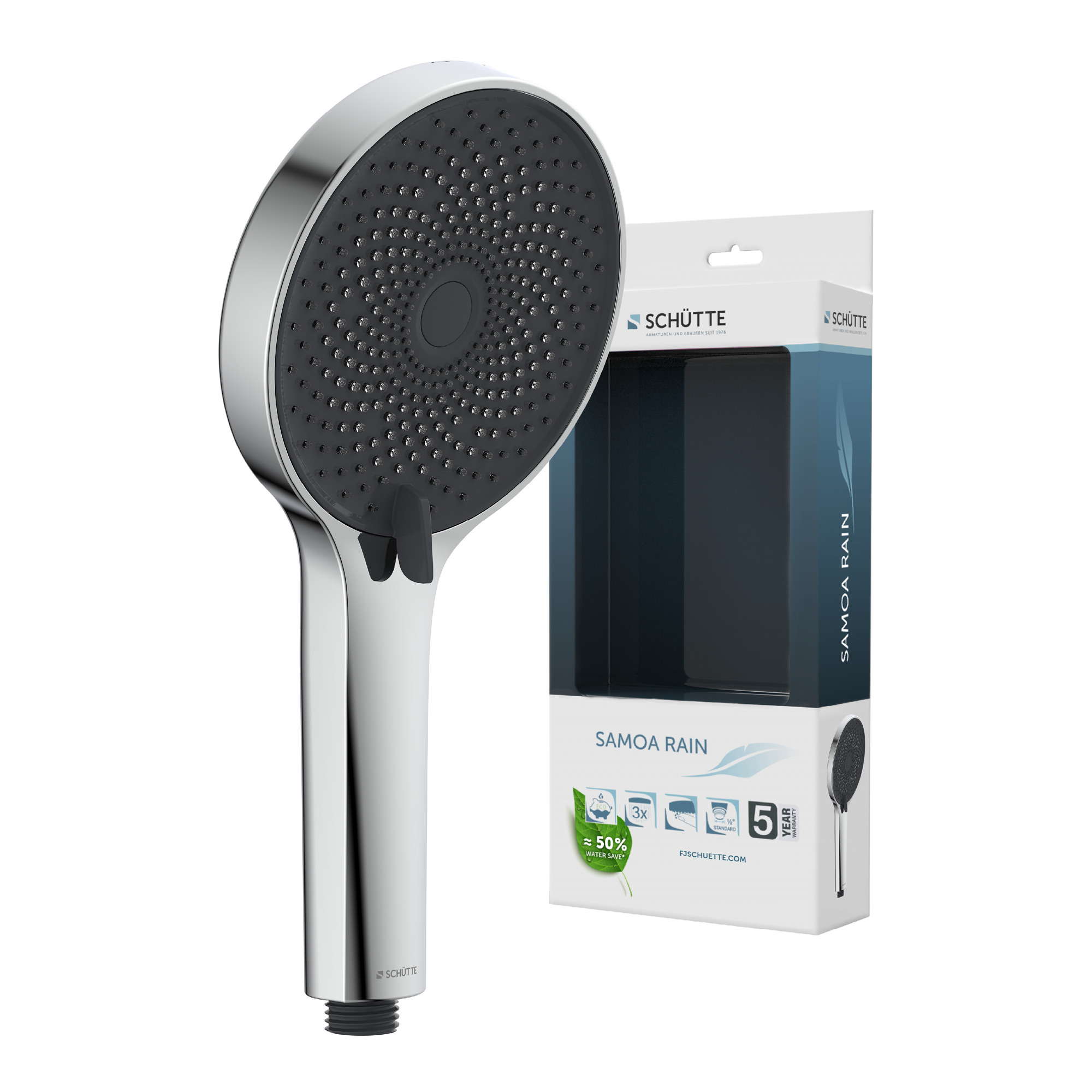 SAMOA RAIN Handdouche, chroom/antraciet • antikalk nozzles • ½” (Ø ca. 1,9 cm) doucheslang verbinding • 3 straalsoorten • Garantie: 5 jaar