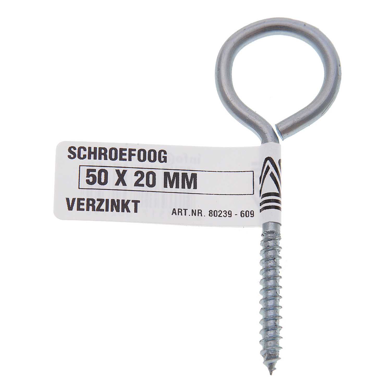 Verzinkt stalen schroefoog bedoeld om dingen aan op te hangen. Zo kunt u een schroefoog gebruiken voor het spannen van draden van bijvoorbeeld afrastering of drooglijnen.