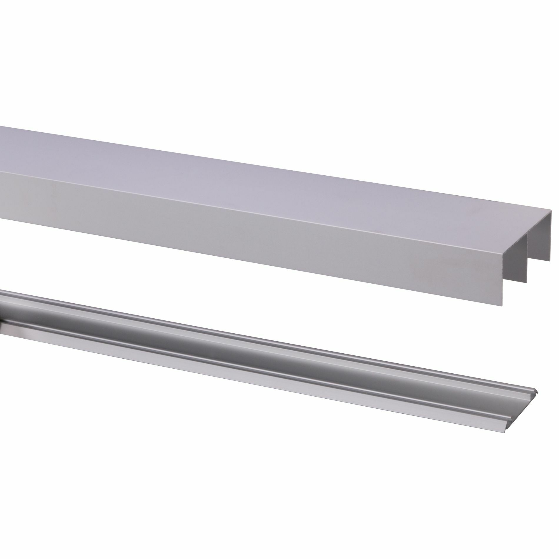 Boven- en onderrail voor het maken van je rollende schuifdeuren. Deze rail van StoreMax combineer je met StoreMax deursets R-40 of R-60. Met een lengte van 240cm is deze rail geschikt voor 3 deuren. Dit type rail is ook beschikbaar in lengte 180cm (2deuren) en 360cm (4deuren) en in de kleur wit i.p.v. aluminium. Bevestig de rail met de schuine kapclip van StoreMax bij het plaatsen van deuren onder een schuin dak.