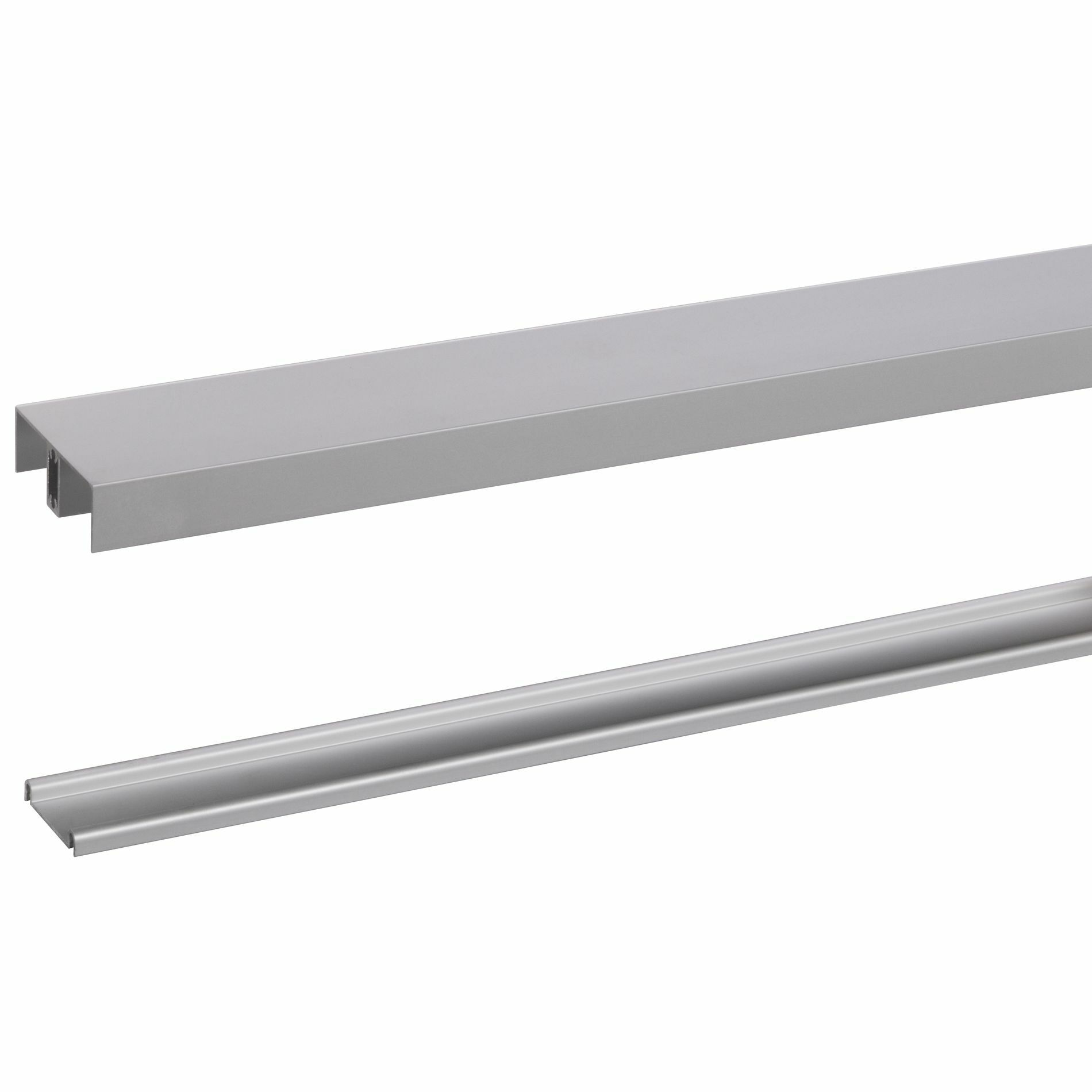 StoreMax basic railset R-20 in de kleur aluminium t.b.v wielset R-20. Voor het creëren van een bodemrollende schuifdeurkast. Van vloer tot plafond en van muur tot muur. Voordelen van dit systeem: stabiele schuifwand door onder- én bovengeleiding. Gewicht op de onderrail dus geen zware constructie aan de bovenzijde nodig. Lengte rail: 360 cm