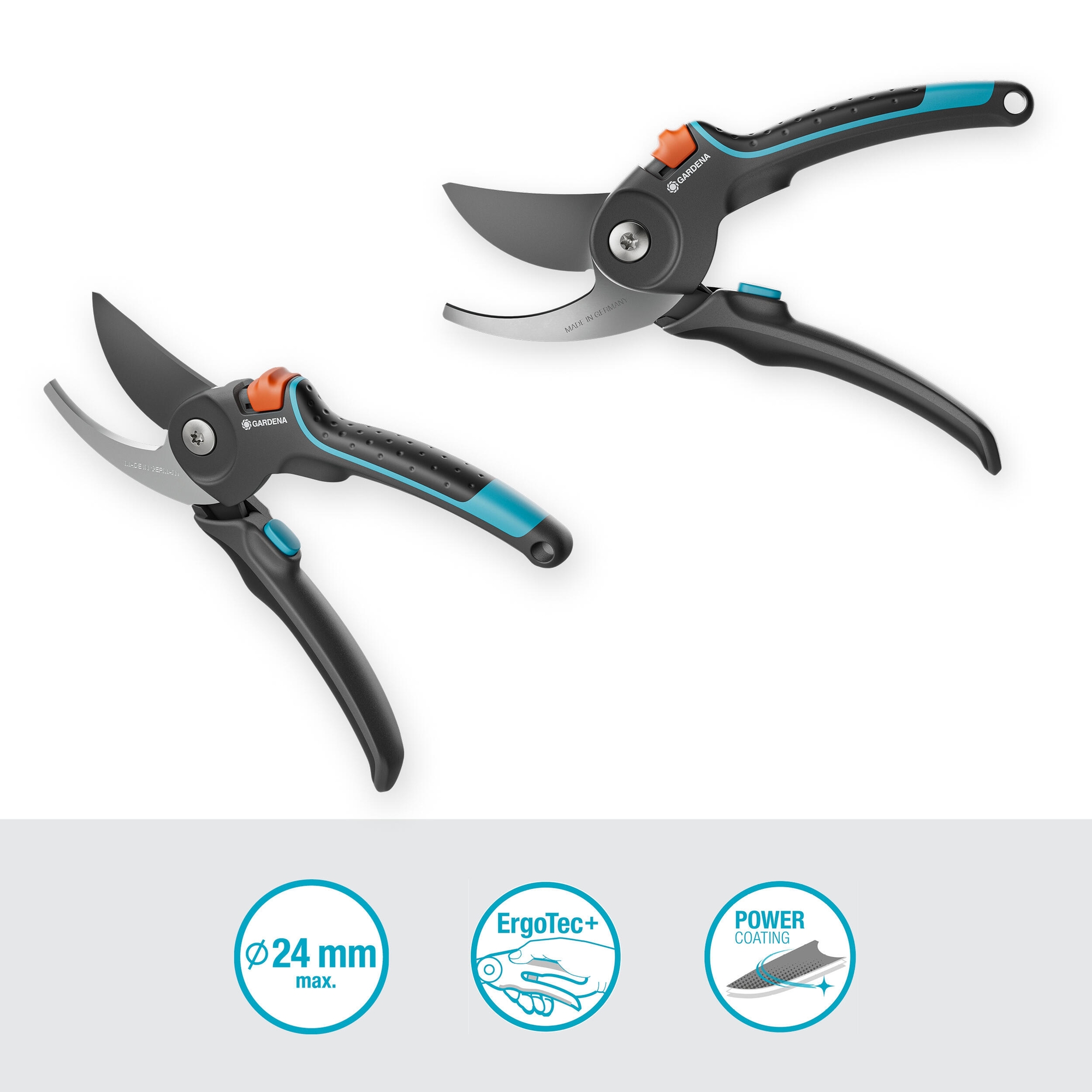 Sterke prestaties – eenvoudig te hanteren. De slimme oplossing voor moeiteloos snoeien, de GARDENA Snoeischaar PremiumCut Pro Jong Hout, heeft een snoeidiameter van 24 mm, een beschermende polsbuffer, een veiligheidssluiting die met één hand te bedienen is, een borgveer en de kenmerkende PowerCoating van GARDENA. Intuïtieve ergonomie Deze eersteklas snoeischaar is handig en draagbaar en biedt veel snoeikracht in een lichtgewicht en comfortabel pakket. Met GARDENA’s ergonomische 2K soft-grip handgreep is hij ontworpen voor het comfort van de gebruiker, waardoor de belasting op de handen wordt geminimaliseerd voor snoeien zonder vermoeidheid. De handgrepen zijn versterkt met glasvezel voor extra stabiliteit en zijn gemaakt van 40% gerecyclede kunststof. Netjes en precies snoeien De GARDENA Snoeischaar PremiumCut Pro Jong Hout maakt het snoeien van droge houtachtige twijgen en takken een krachtige snoeiervaring. De scherpe precisiegeslepen messen hebben een snoeidiameter van 24 mm en zijn voorzien van GARDENA’s PowerCoating voor gezonde planten, eenvoudig schoonmaken en langdurige bescherming. Bypass-snoeien wil zeggen dat de messen elkaar passeren en sluiten zoals een schaar. Dit zorgt voor een schonere snede met minder kneuzingen en pletten van de tak of twijg. Sterke snoeikracht Deze messen zijn gemaakt van hoogwaardig staal voor moeiteloos snoeien. Langdurige scherpte Deze PremiumCut Pro Snoeischaar Jong Hout wordt in Duitsland gemaakt volgens de strenge normen van GARDENA. Hij is ontworpen voor langdurige snoeiefficiëntie en een lange levensduur zonder zorgen. Eenvoudig op te bergen en veiligheidsfuncties De handgrepen van deze snoeischaar zijn voorzien van een ophanglus voor makkelijk en handig opbergen. De PowerCoated messen zijn voorzien van een veiligheidssluiting met één hand, waardoor je de messen eenvoudig in de gesloten stand kan vergrendelen als je ze niet gebruikt, voor meer veiligheid en gemak.