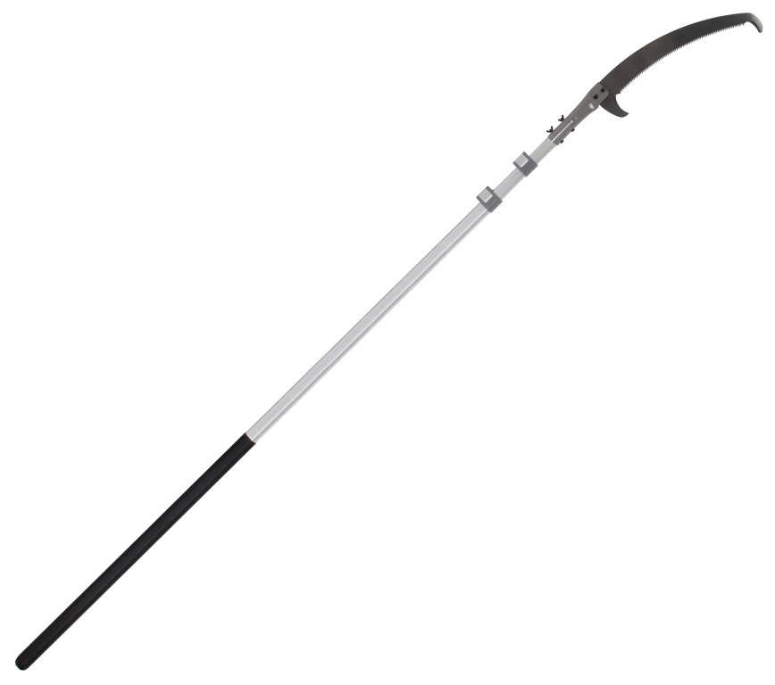 Deze snoeizaag is ideaal voor het doorzagen van hoge takken. Het gebogen blad met 3 zijdig geslepen tanden zorgt voor een krachtbesparende en gladde snede. Om te voorkomen dan de zaag uit de snede wordt getrokken zit aan beide zijden een takhaak. Hiermee kunnen de afgezaagde takken ook uit de boom gehaald worden. De snoeizaag is voorzien van een verlengbare steel tot max. 500cm.