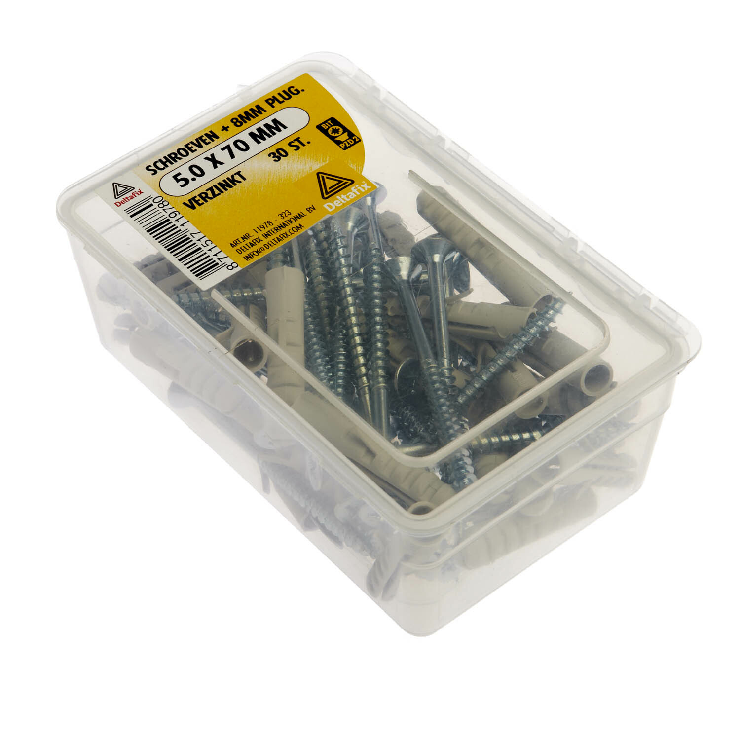 8 mm nylon plug of S-plug met weerhaken die voorkomen dat de plug meedraait met het bevestigen van de schroef. Deze plug wordt het meest gebruikt in massieve bouwmaterialen. De brede vertanding zorgt voor een goede verankering. Deze pluggen worden geleverd inclusief spaanplaatschroeven.-
