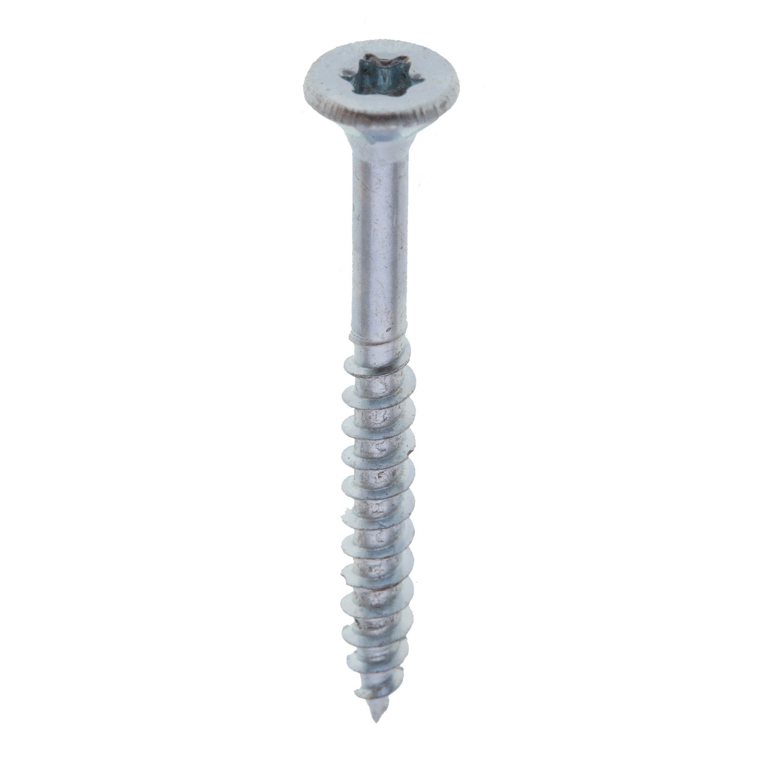 Verzinkt stalen spaanplaatschroeven met platverzonken torxkop zijn uitermate geschikt voor het bevestigen van hout- en plaatmateriaal. De grove winding en scherpe punt met snijgleuf zorgen ervoor dat de schroef makkelijk in het hout draait, voorboren is daarom vaak niet nodig. Door de platte kop met freesribben verzinkt de schroef in het materiaal.-