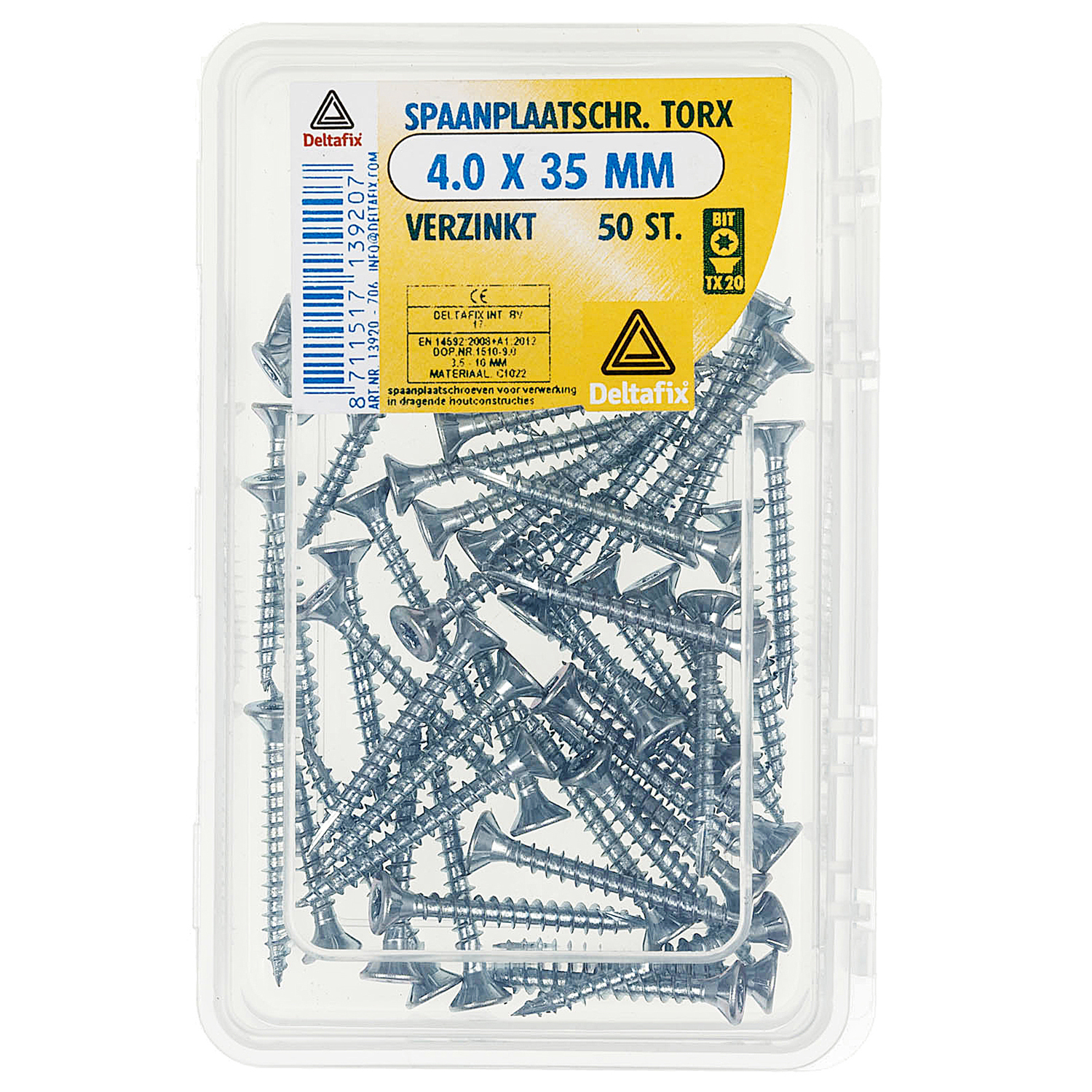 Verzinkt stalen spaanplaatschroeven met platverzonken torxkop zijn uitermate geschikt voor het bevestigen van hout- en plaatmateriaal. De grove winding en scherpe punt met snijgleuf zorgen ervoor dat de schroef makkelijk in het hout draait, voorboren is daarom vaak niet nodig. Door de platte kop met freesribben verzinkt de schroef in het materiaal.-