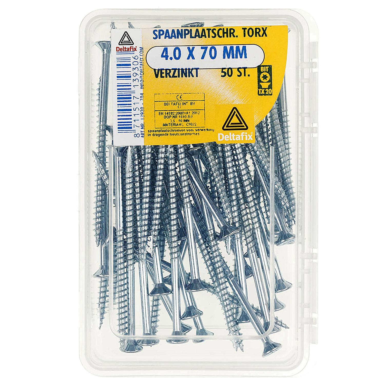SPAANPLAATSCHROEF PK TX MET NIBS+SNIJPUNT VZ 4.0 X 70 MM 50ST