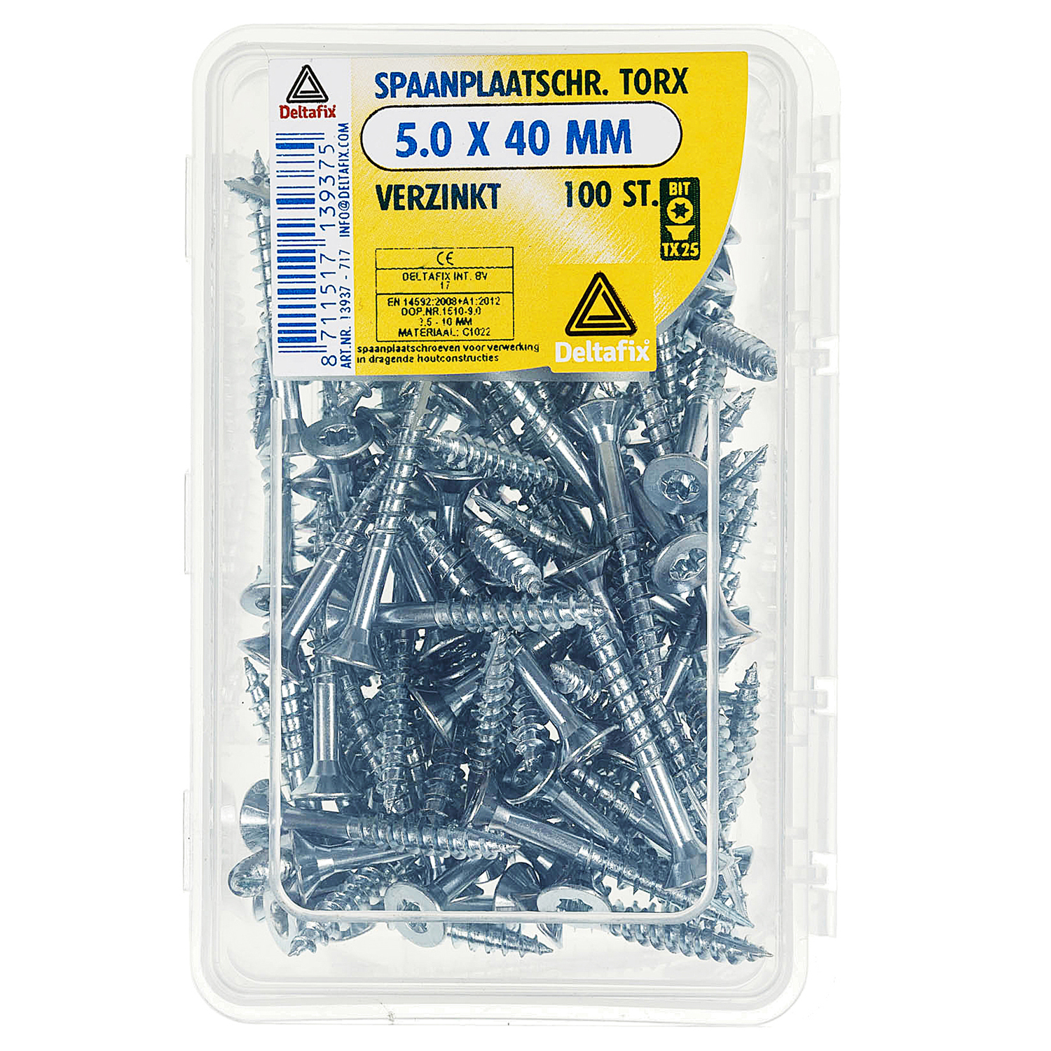 Verzinkt stalen spaanplaatschroeven met platverzonken torxkop zijn uitermate geschikt voor het bevestigen van hout- en plaatmateriaal. De grove winding en scherpe punt met snijgleuf zorgen ervoor dat de schroef makkelijk in het hout draait, voorboren is daarom vaak niet nodig. Door de platte kop met freesribben verzinkt de schroef in het materiaal.-